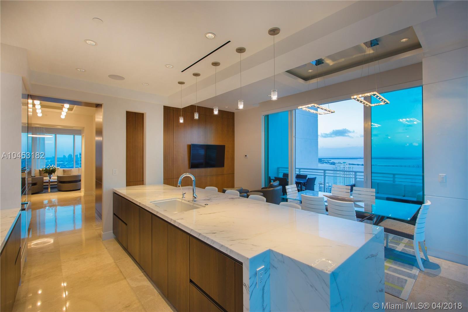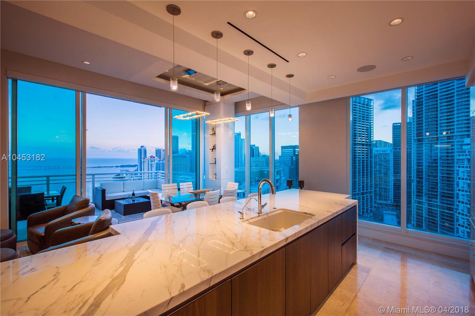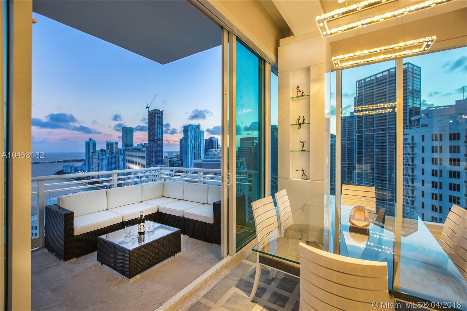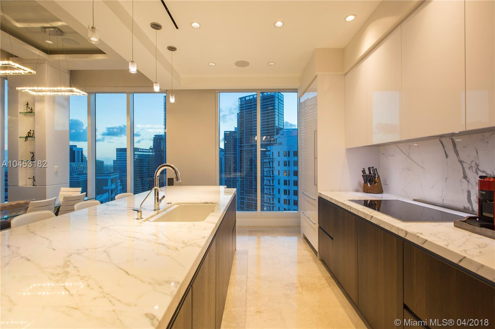 Like a dominant bird of prey, perched high above one of the worlds most beautiful cities. You will enjoy this totally updated exquisite condo over miami. With some of the most exhilarating views of the Ocean, Biscayne Bay, Miami Beach and Key Biscayne, from High above the mouth of the Miami River, you will witness the beauty of each and every day, from sunrise to sunset. Snaidero, Miele, Sub Zero, and Carrera marble will enable your culinary endeavors while home automation and technology surrender some of the most mundane tasks to the push of a button. 4 elegantly appointed bedrooms with ample balconies, 4.5 baths with beautiful stone finishes. 3 dedicated parking spaces by the lobby + valet, private elevator foyer, rationalized storage and a home you won't want to leave.