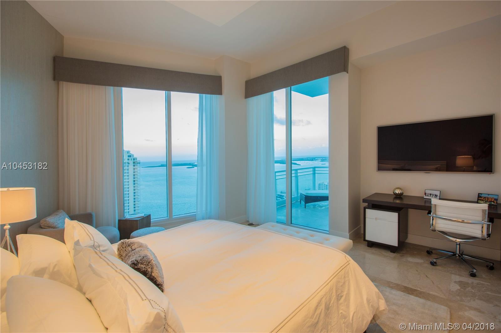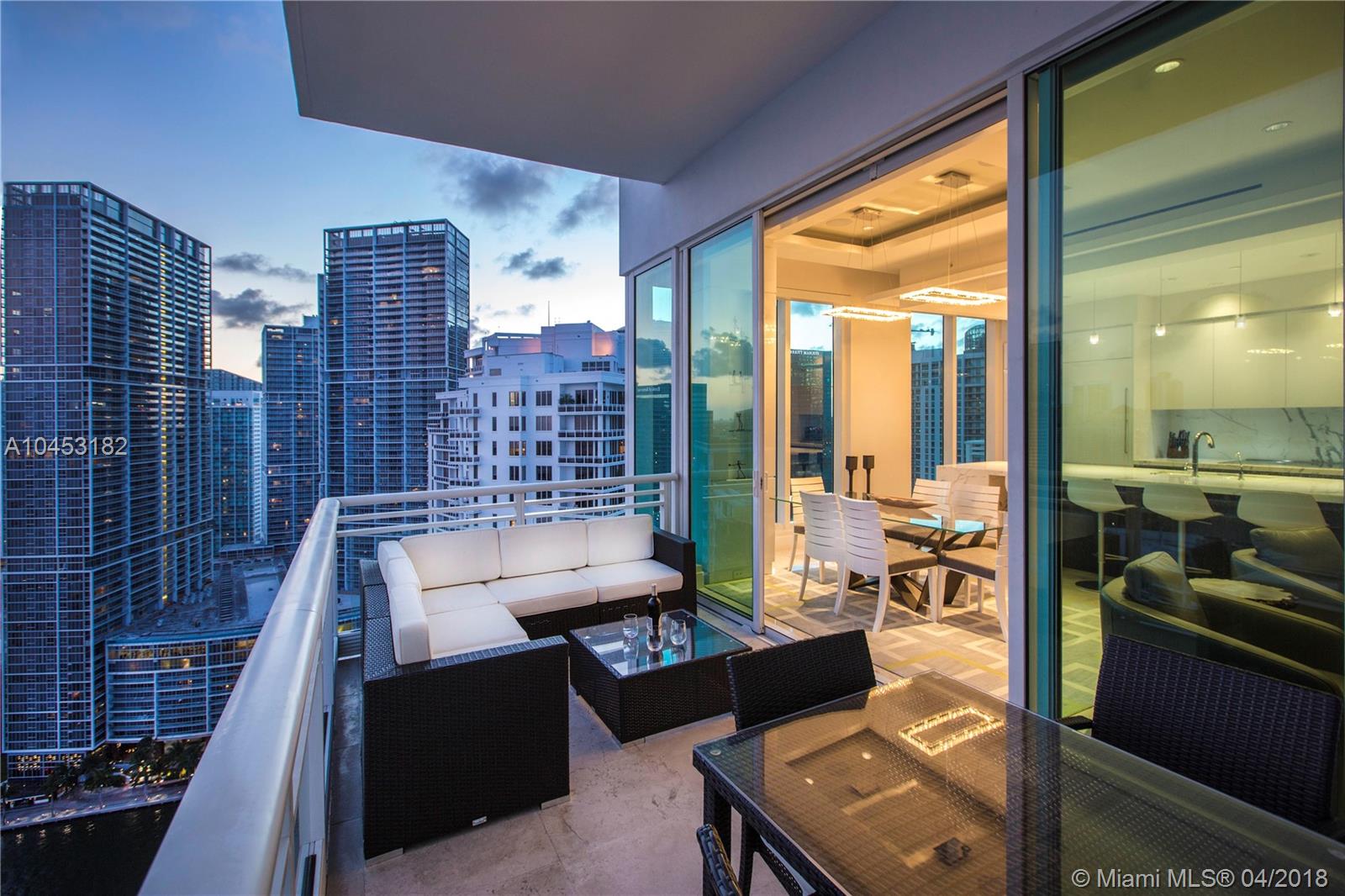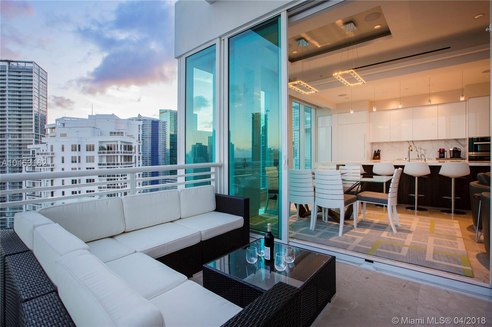 Like a dominant bird of prey, perched high above one of the worlds most beautiful cities. You will enjoy this totally updated exquisite condo over miami. With some of the most exhilarating views of the Ocean, Biscayne Bay, Miami Beach and Key Biscayne, from High above the mouth of the Miami River, you will witness the beauty of each and every day, from sunrise to sunset. Snaidero, Miele, Sub Zero, and Carrera marble will enable your culinary endeavors while home automation and technology surrender some of the most mundane tasks to the push of a button. 4 elegantly appointed bedrooms with ample balconies, 4.5 baths with beautiful stone finishes. 3 dedicated parking spaces by the lobby + valet, private elevator foyer, rationalized storage and a home you won't want to leave.
