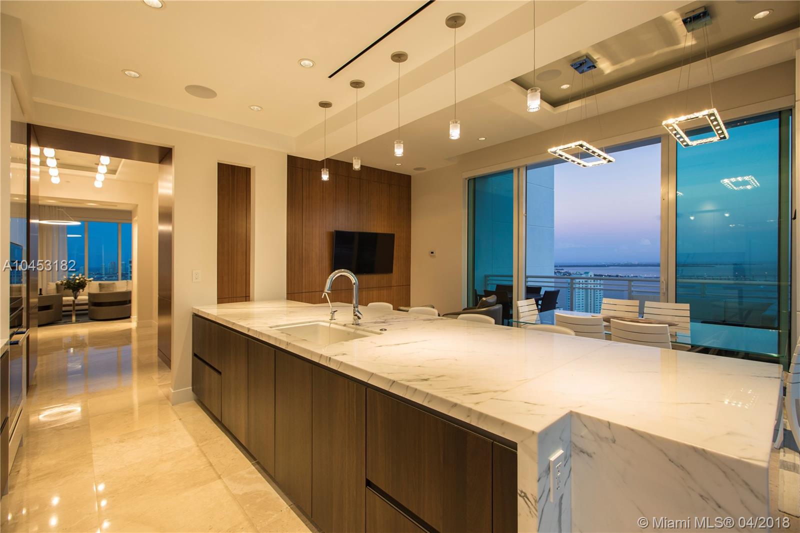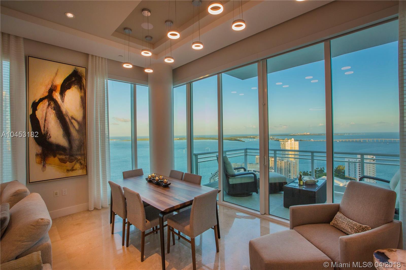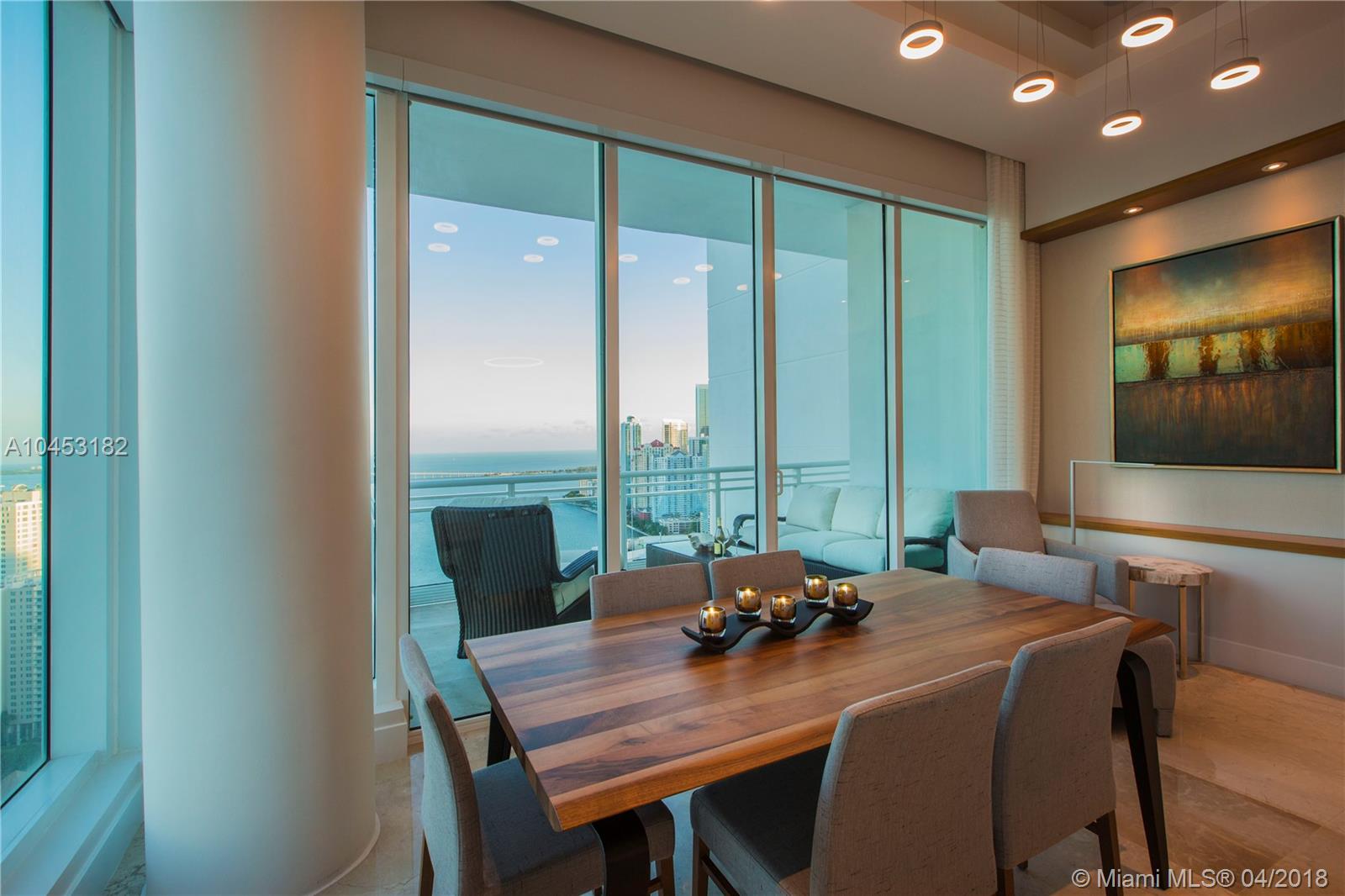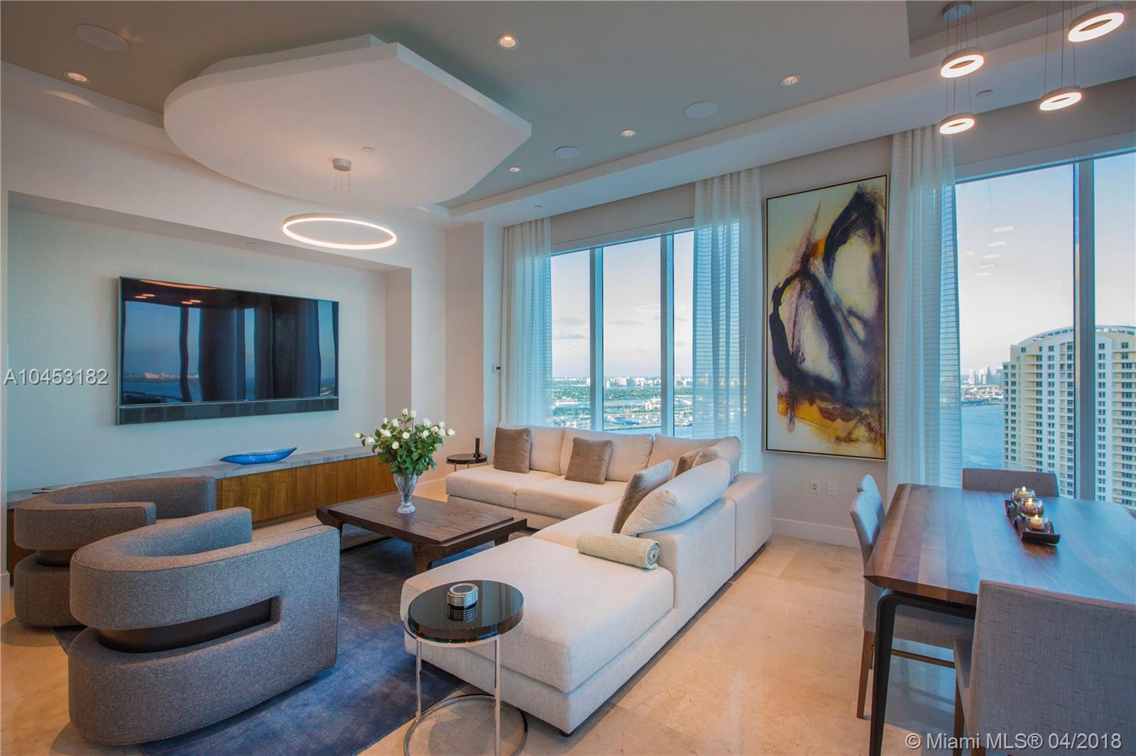 Like a dominant bird of prey, perched high above one of the worlds most beautiful cities. You will enjoy this totally updated exquisite condo over miami. With some of the most exhilarating views of the Ocean, Biscayne Bay, Miami Beach and Key Biscayne, from High above the mouth of the Miami River, you will witness the beauty of each and every day, from sunrise to sunset. Snaidero, Miele, Sub Zero, and Carrera marble will enable your culinary endeavors while home automation and technology surrender some of the most mundane tasks to the push of a button. 4 elegantly appointed bedrooms with ample balconies, 4.5 baths with beautiful stone finishes. 3 dedicated parking spaces by the lobby + valet, private elevator foyer, rationalized storage and a home you won't want to leave.