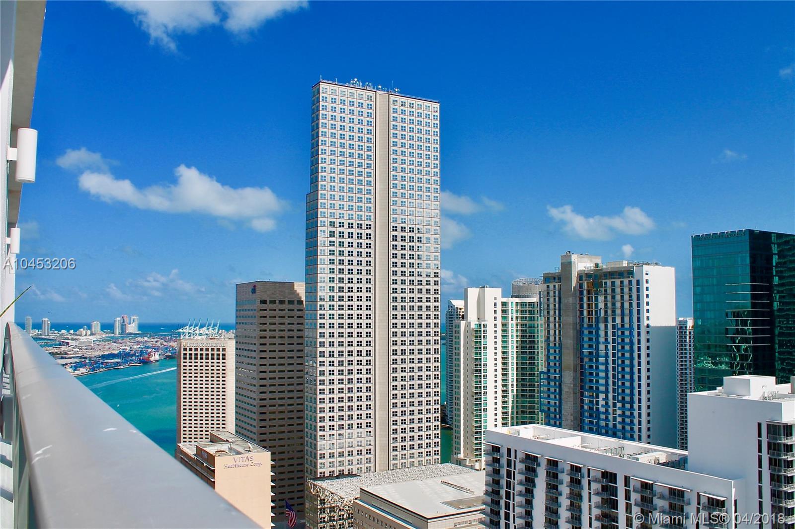 UPGRADED UNIT! One of the only units for sale that has a wall dividing the kitchen and the bedroom! Seller also upgraded the kitchen by adding an extra counter. The interior unit features stainless steel appliances, washer & dryer, gray polish concrete floors, walk-in master closet, amazing views, and much more. Building features roof deck infinity pool, fitness, 24 hr desk service, valet service, and top of the line amenities. 2 blocks from Brickell, AA Arena, Metro mover Station, Whole Food Supermarket, Bayfront Park, and many restaurants. Do not miss your opportunity to own this beautiful unit in CENTRO. Great for income producing property. Low HOA fees and taxes. Easy to show.