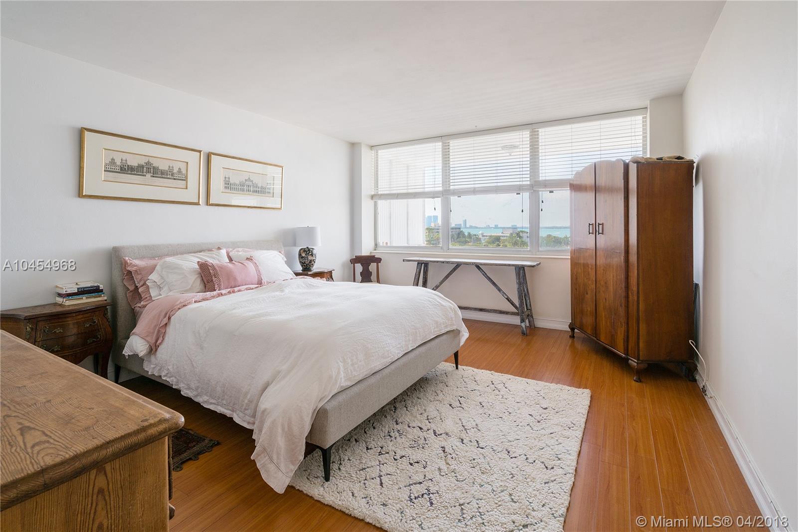 Beautiful Biscayne bay and park view from this light and bright, renovated large one bedroom apartment in sought after building on Belle Isle. Open kitchen, private balcony, 24 hr security, assigned parking, pool, kayak storage, bicycle storage, fitness center, boat docks for lease (dependent upon availability). Walk to all of South Beach's finest attractions - across the street from The Standard! The shops and restaurants of Sunset Harbor and Lincoln Road just a few blocks away. Well priced - call today!