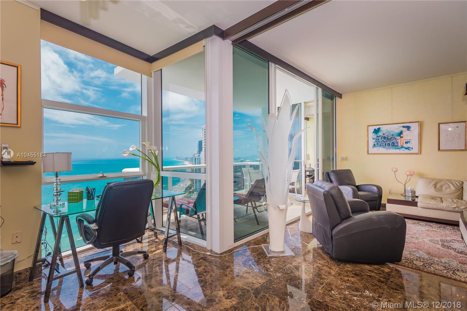 3 bed 3.5 bath with expensive & unobstructed direct ocean, intracoastal and city view from the 50 floor of Trump Palace. European fully equipped kitchen w/ granite countertops, stainless steel appliances, marble in the living area and carpet in the bedrooms. California closet, private elevator, full service oceanfront 4 pools, pool side service, spa, tennis, basketball, 24/7 fitness center, dog park, 2 restaurants, concierge, valet and much more.