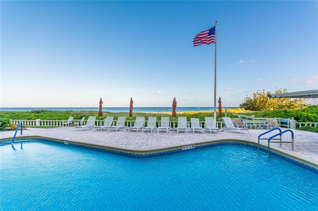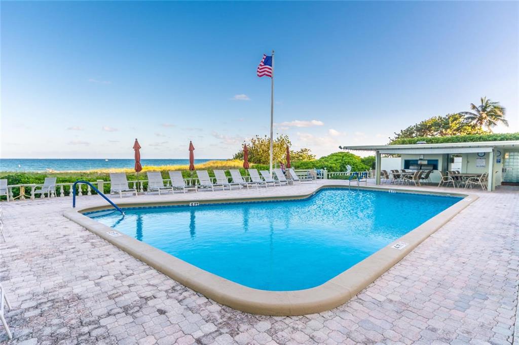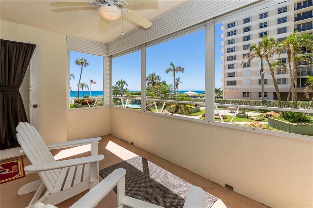 Move-in condition offers amazing ocean and garden views. Neutral tile floors throughout. Enjoy daily sunrises + ocean breezes on the large + private balcony. Beautifully remodeled guest bathroom. Over-sized exterior storage. The heated pool and beach pavilion with BBQ invite you to relax. Well kept building close to fabulous restaurants & shopping. Ride the free Pelican Hopper Shuttle to the center of Lauderdale-By-The-Sea.