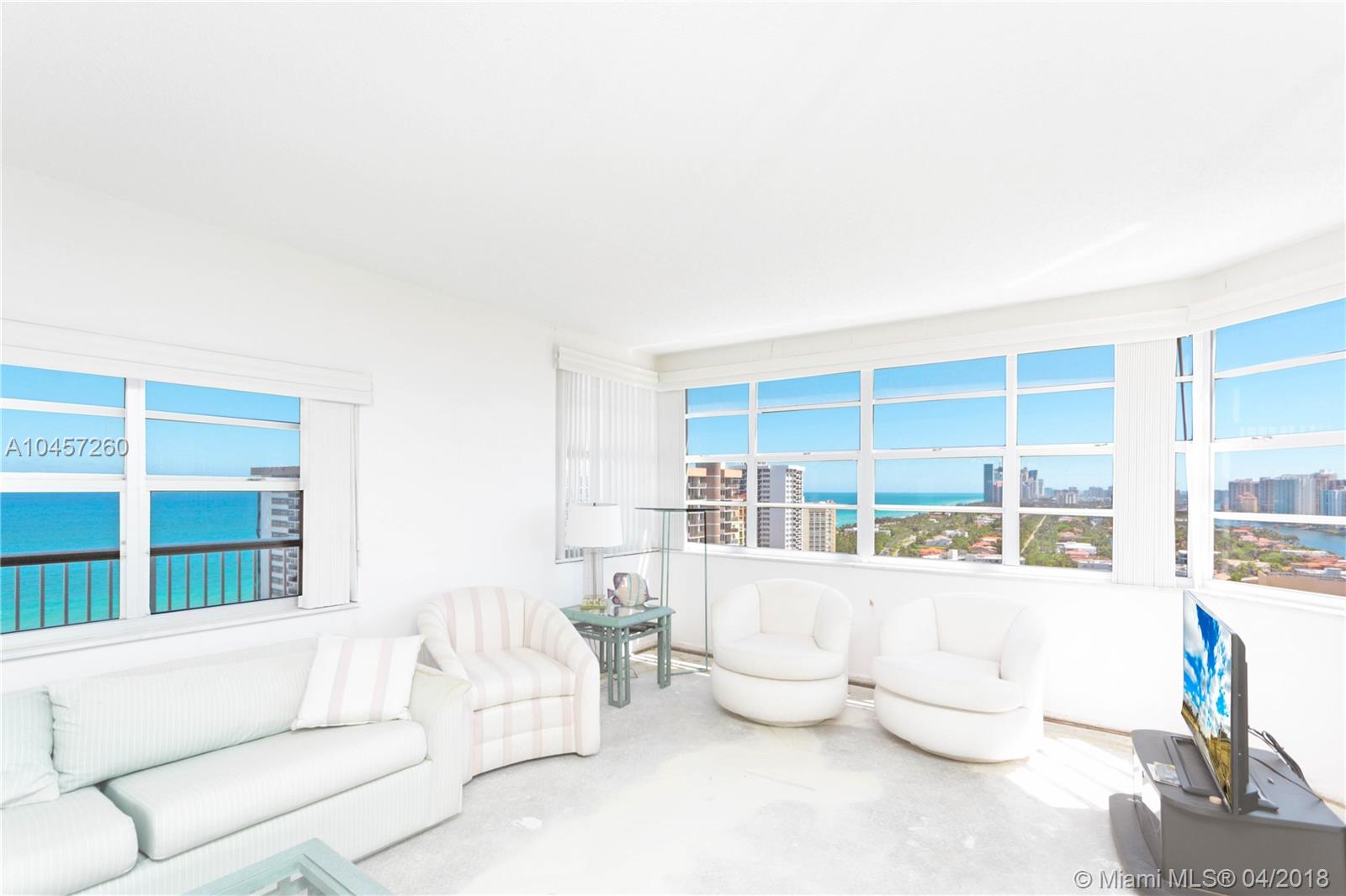 Spectacular Ocean views from all rooms, 3 Bedroom, 2.5 Baths, facing Southeast, Unit needs complete rehab Amenities include, 2 heated pools, 2 restaurants, ocean access, beach lounge chair service, pool snack bar, fitness center, tennis courts, basketball court, shuffle board, children pool/play area, marina w/dock available, mini-mart, hair salon, 24 hr security, valet, maintenance includes air conditioning and basic cable. Easy to show.