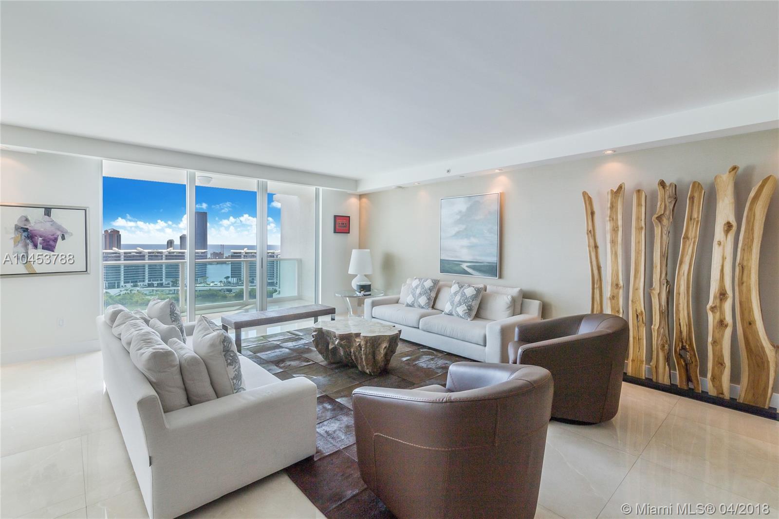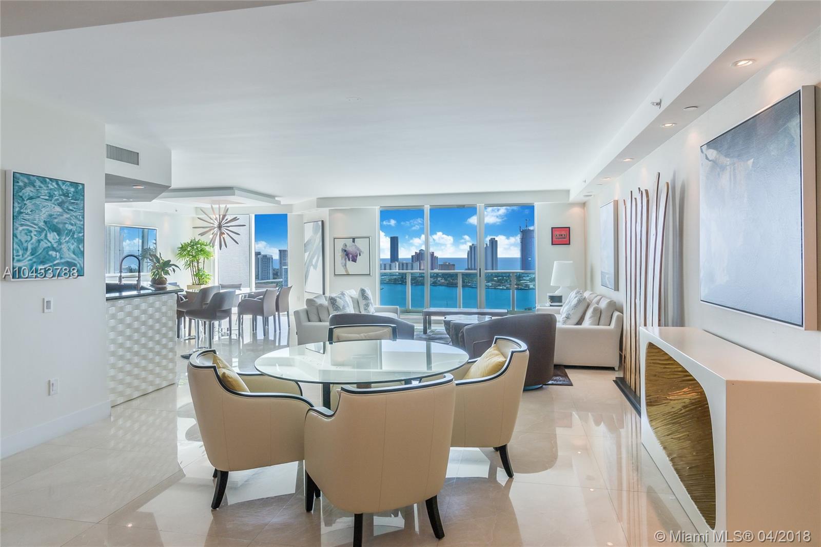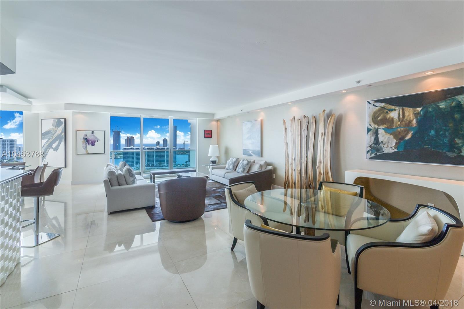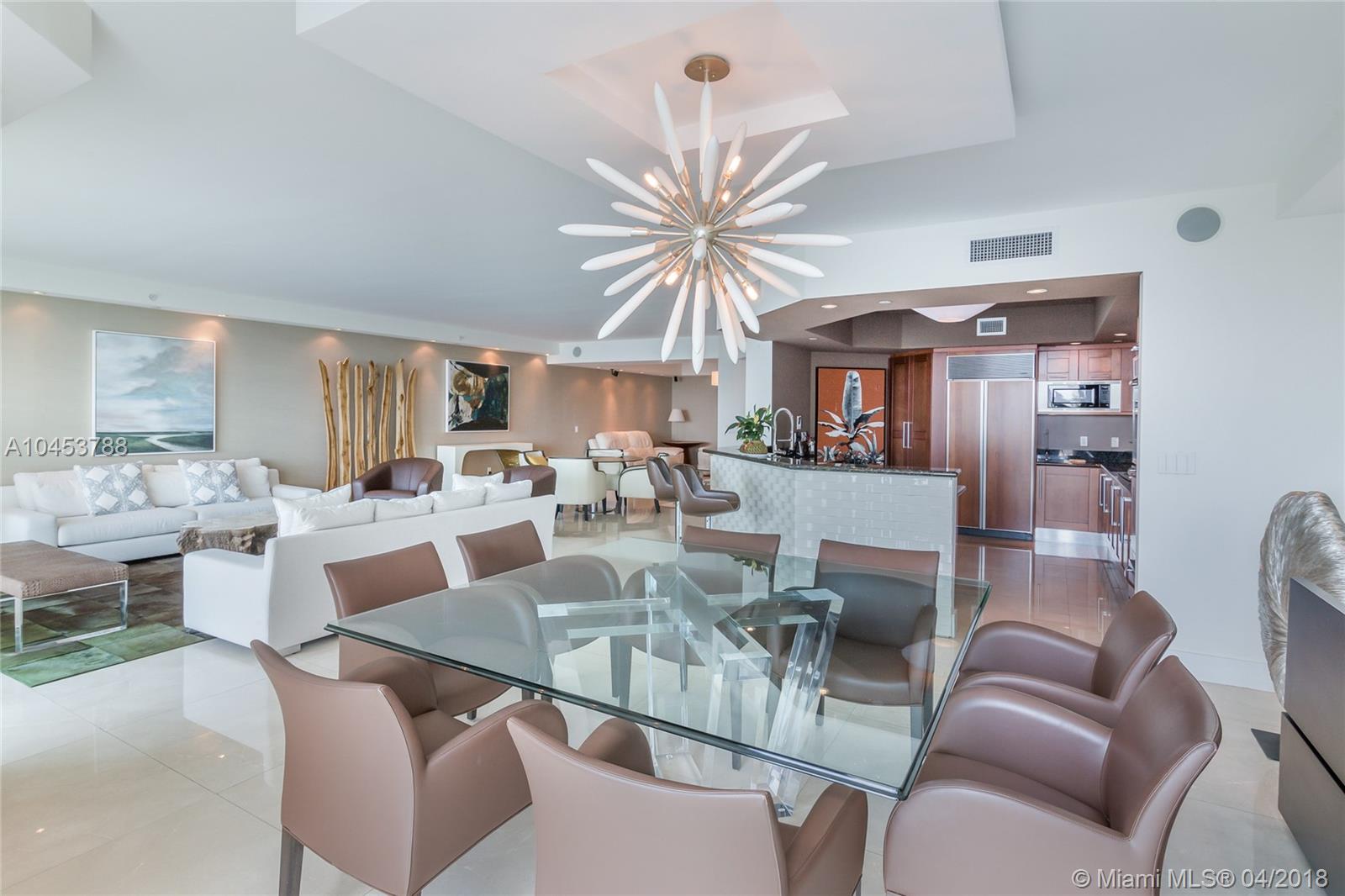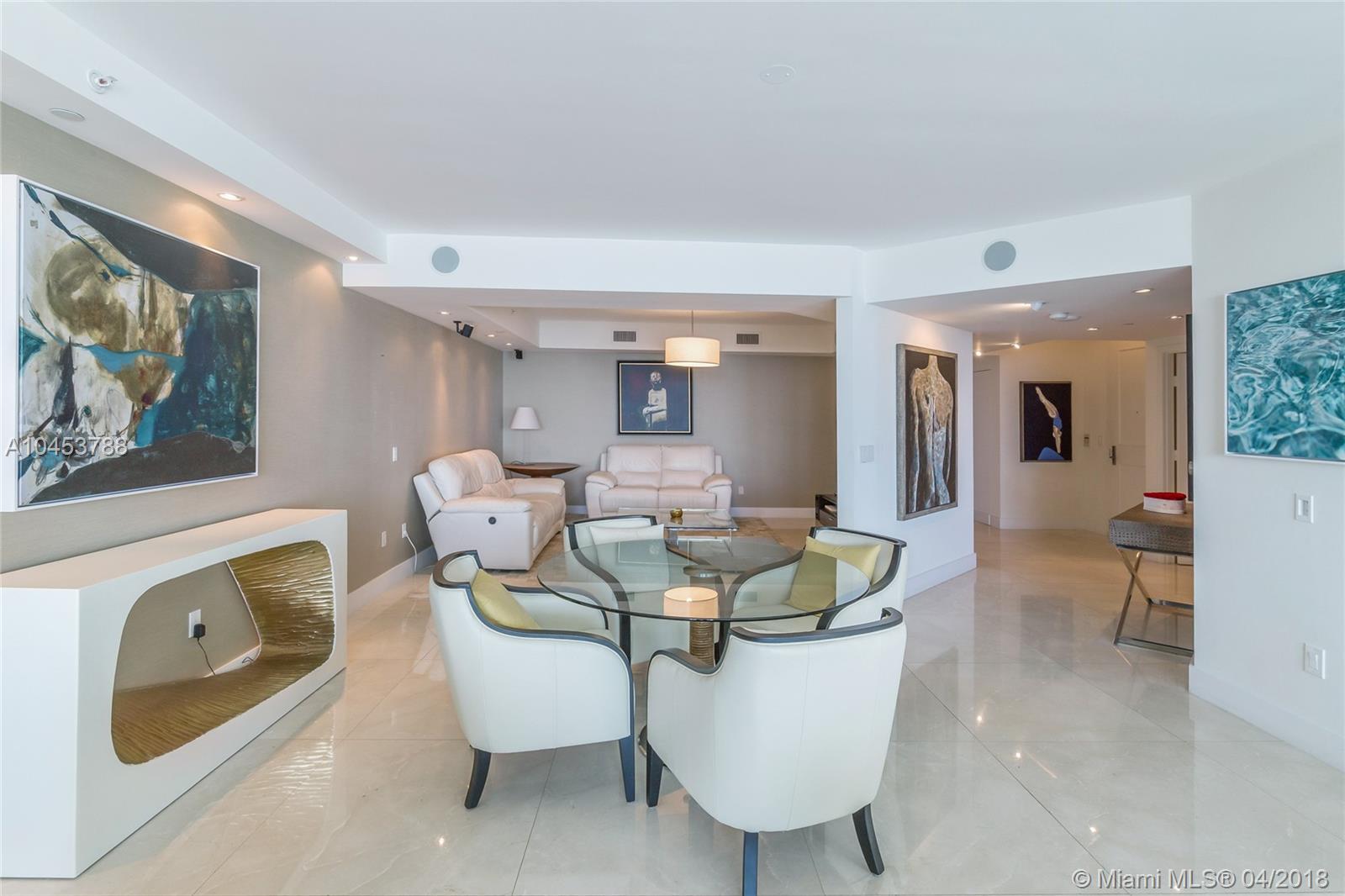 Beautiful residence with Spectacular unobstructed direct ocean, intracoastal and city views. High attention to detail in this Unit. Extra lighting with high end dimmers. Flow through floor Plan, open kitchen with top of the line appliances and breakfast area and extra pantry. 3 Bedrooms, 3.5 bathrooms, plenty of storage and closet space, laundry room. Media room, Electric blinds and High-end Audiovisual system all through out home. 3 open terraces. Furniture is Negociable. Property has Amazing art work and great Taste Decor. Building has 5 star amenities: 2 heated swimming pools and spa. Barbecue Area, Recreation area, Club House, Business Center, 3 tennis courts, Complementary Valet parking, Concierge, Juice and coffee bar and much more!!