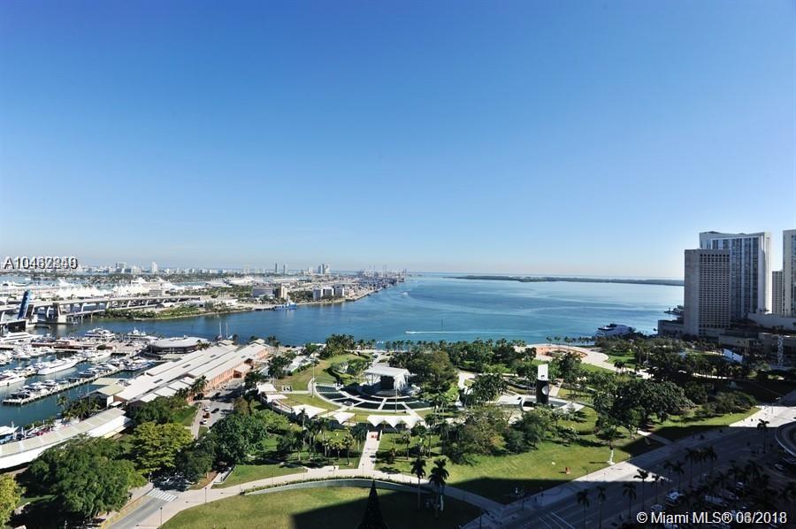 Priced to Sell.Direct panoramic Bay views from this Beautiful 2BR/2.5 BA + a large den that can be converted to a 3rd BR. Across from Bayside, the American Airlines Arena, the Jorge Perez museum and steps away to the new Miami Word Center. Amenities include, health and fitness center,Spa, 4 pools, concierge, sundeck, movie theater. Best price per square foot in the Building. Unit is rented $ 3300 until August 2018.