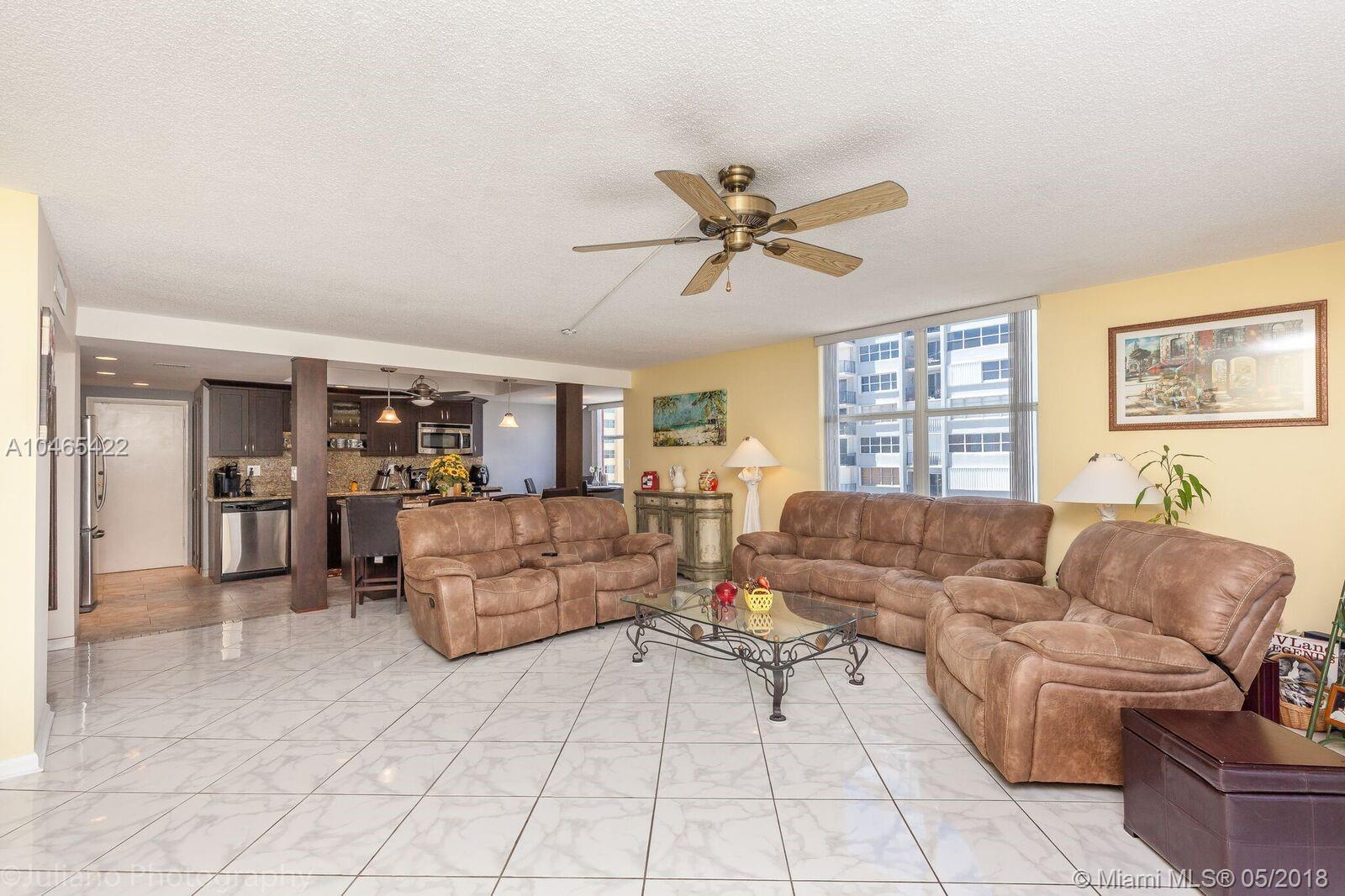 Very Spacious ,beautiful 2 bedroom 2 bath corner apartment,with incredible views of Ocean ,city and bay views. Fully updated with granite counter tops, hurricane windows and sliding doors, new A/C and water heater, washer and dryer inside in apartment.Lots of storage space in the kitchen .Walking distance to famous Holywood Beach board walk.Low maintenance ,can be rented after 2 years. Must see ,will not last.