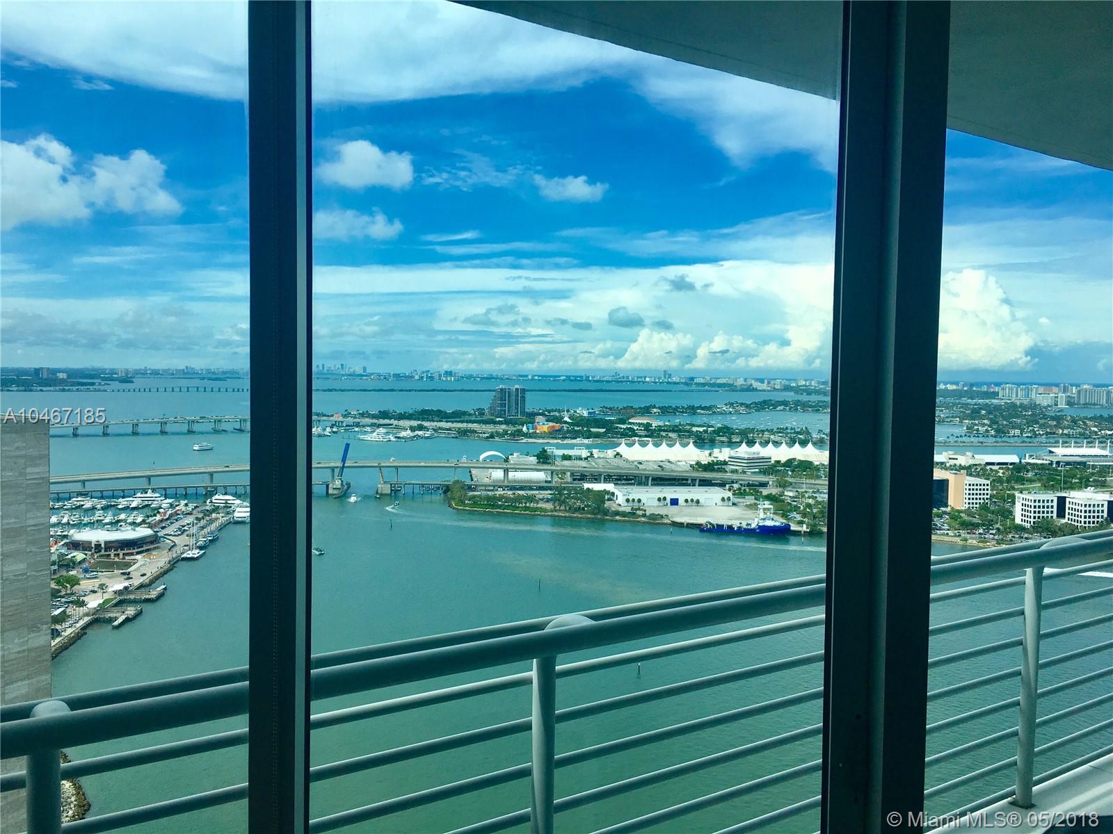 DIRECT BAY VIEWS 40 STORIES ABOVE DOWNTOWN MIAMI. ENJOY A COMMANDING VIEW OF THE CRUISE SHIPS AND THE SKYLINE LIGHTS UP BEAUTIFULLY IN THE EVENINGS. ONE OF THE MOST SOUGHT AFTER WATERFRONT LOCATIONS ON ALL OF MIAMI. ONE MIAMI CONDO IS SURROUNDED BY A WATERFRONT BAYWALK ADORNED WITH ART INSTALLATIONS THAT IS PERFECT FOR A MORNING JOG OR AN EVENING STROLL. FULL SERVICE RESORT STYLE AMENITIES INCLUDE 2 POOLS, FITNESS CENTER, 24 HOUR VALET AND MORE. THIS SPACIOUS ONE BEDROOM BOASTS 24 X 24 PORCELAIN TILE THROUGHOUT AND THE NORTH FACING BALCONY SEES OVER THE INTERCONTINENTAL HOTEL ONTO BAYFRONT PARK AND MIAMI BEACH.