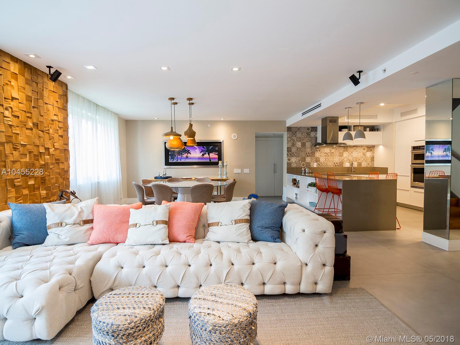 Stunning oceanfront duplex apartment, being offered fully furnished with high-end designer pieces and luxurious finishes, such as fine imported wall papers, throughout the apartment, recess and spot lighting, making this unit a one of a kind. With an open and functional floorplan, the apartment has 4 spacious bedrooms, a great office space and 4 1/2 bathrooms plus service area. Located in the heart of Surfside and just a few blocks from The Bal Harbour Shops and surrounding shopping areas, this condo is all about location! The Spiaggia Ocean offers a great oceanfront lifestyle with a full time concierge team, ocean front pool and gym, a great beach service and 24 hours valet. Come visit this turn key opportunity. Easy to show!!