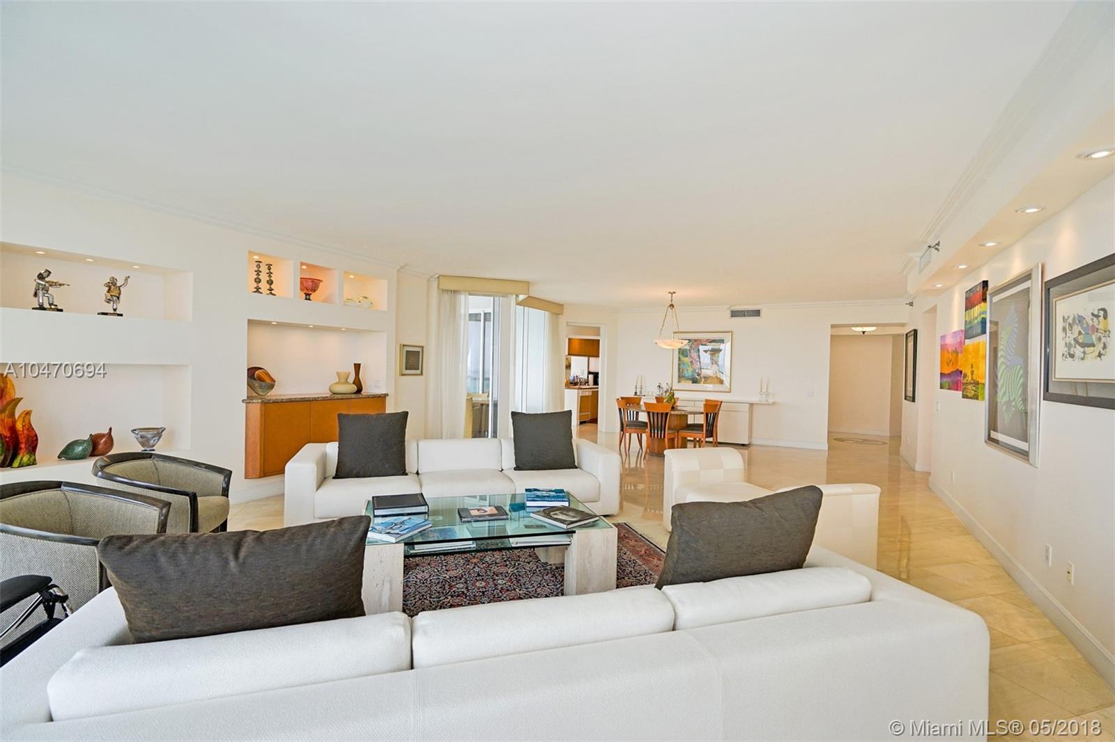 Breathtaking direct Ocean views. Spacious unit across the Intracoastal with beautiful ,marble floors and wood in the bedrooms. Unit includes two assigned parking spots and a storage bin. Complex has three large pools, gardens/barbeque area, tennis courts and the best spa/gym in Aventura with fitness classes and beauty treatments. The third bedroom is open and used as a den.