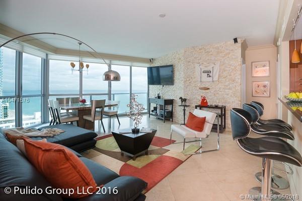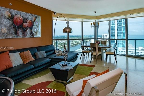 Right on the beach side. Spectacular views of the ocean. Offers best amenities: Pool, media room, billiards room, fitness center, business center, tennis court, BBQ area. Close to fine restaurants, shopping center, Aventura Mall. And great schools. This is a must see property.
