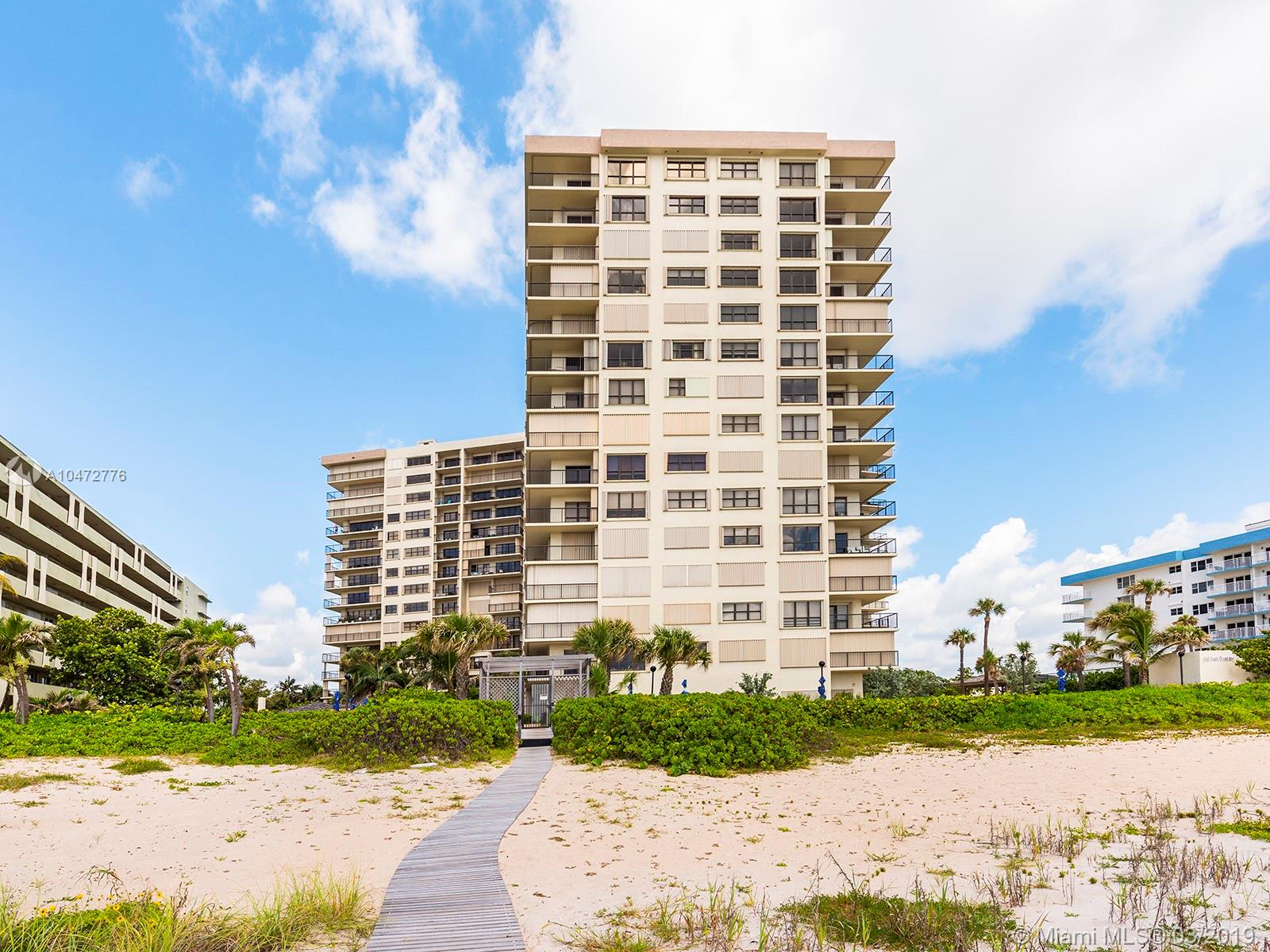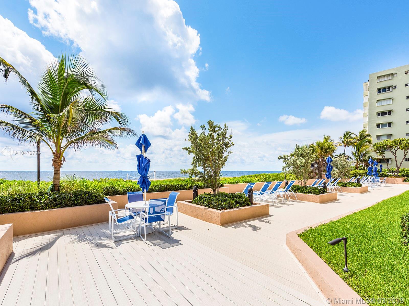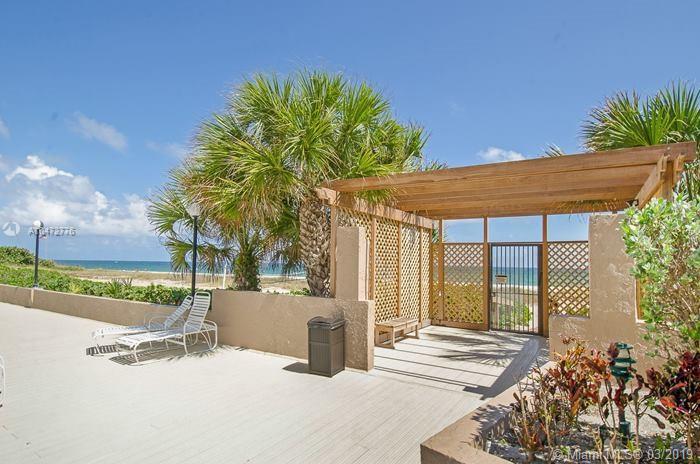 Steps to the sea from your patio! First floor condo with lush landscaping. Relax and watch the sunrise. Easy living in this two bedroom, two bath oceanfront condo. Wonderful amenities include gym, sauna, oceanfront heated pool, tennis, pickle ball and bocce courts, putting green, bbq, 24/7 security, vehicle car wash, garage parking and plenty of guest parking. One small pet welcome. Okay to lease immediately. Great investment and location.