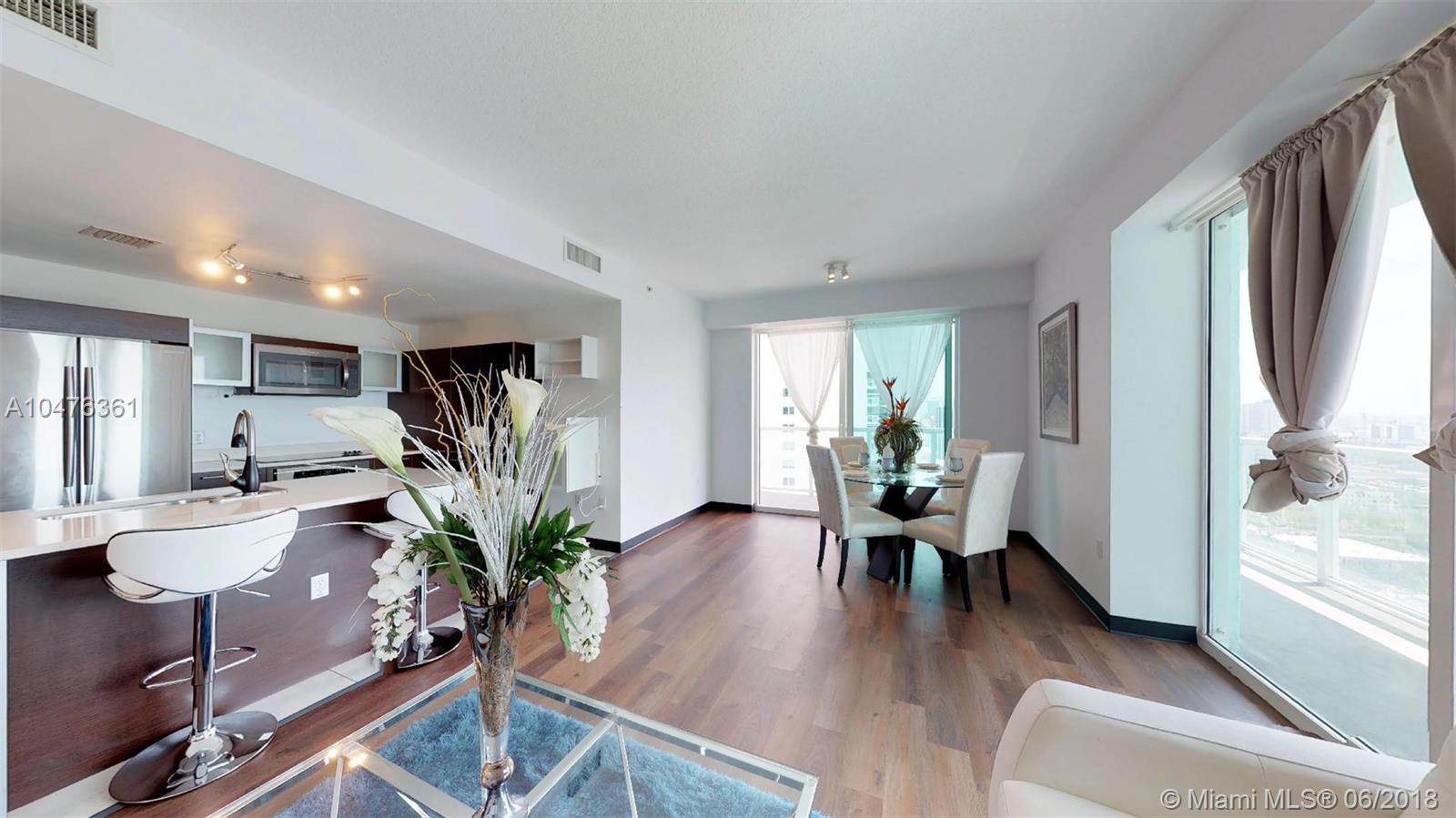 Extremely desirable Edgewater area price to sell! Wonderful unit offered w/2 side by side parking spaces! The best value for a 2/2 at Quantum on the Bay. Stunning skyline views of Miami from this spacious unit that boasts an open floor plan, floor to ceiling impact windows & doors, walk-in closet, new floors, Italian cabinetry, stainless steel appliances, natural stone countertops and washer/dryer too! Enjoy sunsets from your SW facing wraparound terrace. Relax in either of the 2 pools, sauna, resident lounge, theater,cyber library and take advantage of the 2 story fitness center and business center. 24 hour security, Valet parking, convenience store and salon, too! Minutes from Wynwood, the Design District, museums, Publix, and Metro. Pet friendly building facing Margaret Pace Park.