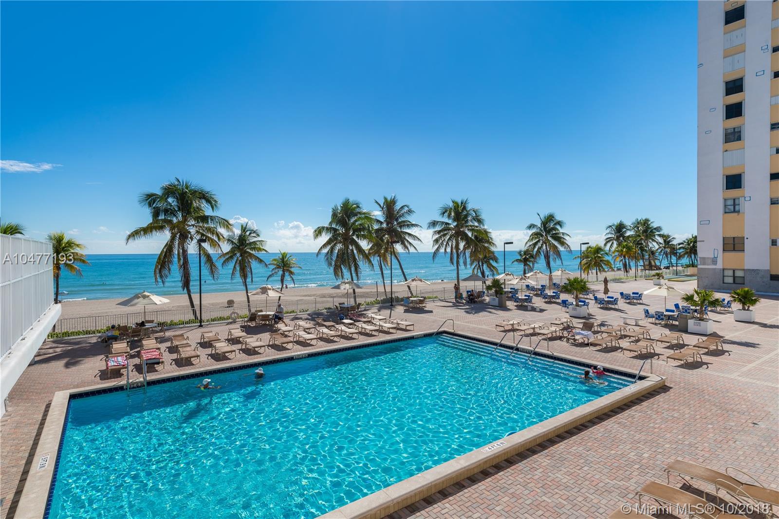Ocean View and intercoastal View, large Balcony with great View (when Completed) Majority of the unit in the process of being updated, Assessment paid Building going thru 40 years inspection with some upgrades can walk to the Hollywood Broad walk ongoing things to do relax and have fun, Amenities 2 Heated Pools, Fitness, Center, Business Center. This a Great chance to have a Condo with a great view almost completely renovated with no Assessment that will be ready to move in and make it your own close to everything to fit the Florida Lifestyle.