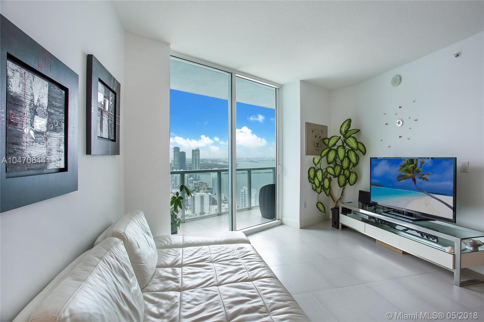 A large 1+den residence available for immediate occupancy, on a high 45th floor with stunning unobstructed views of Biscayne Bay and Miami Beach. The den is used as a second (guest or kids) bedroom or office. Fully remodeled chic unit with white-off contemporary flooring, spacious gourmet kitchen with island and modern touches throughout. Luxury amenities: 24h concierge, valet, convenience store, spa/hair salon, pool, jacuzzi, fitness center, saunas, movie theater and more. Short drive to Brickell, Wynwood, Design District shops and South Beach. Call today!