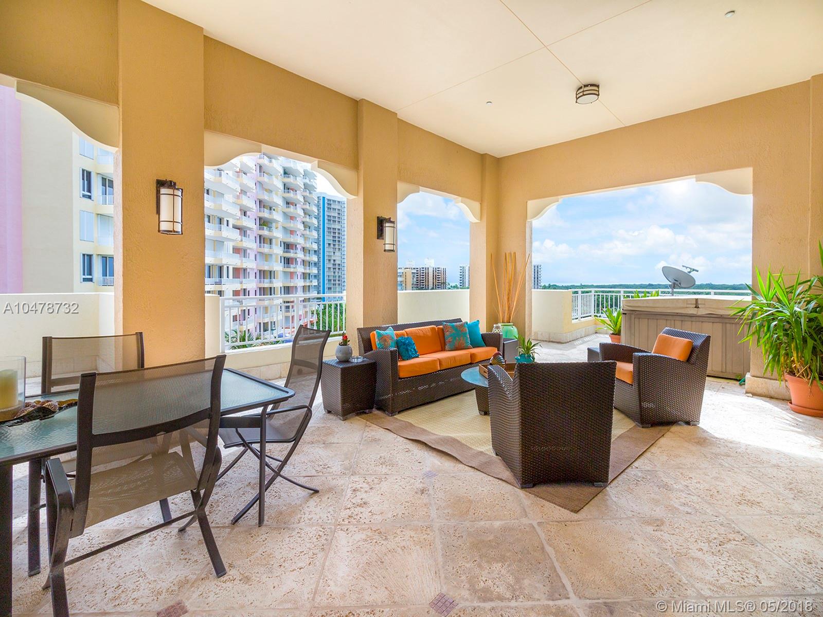 Magnificent! This Roof Garden Penthouse located at the luxurious Ocean Club has it all. Enjoy Ocean, Bay & City views from every room of this 4 bed, 4.5 baths & staff quarters. This designer finished unit featured in “Spectacular Homes of South Florida“ feels like a home. Entertain guests on the Roof Garden terrace apx. 2000 Sq Ft or relax in the Jacuzzi while enjoying the views. Resort Style living, private club, restaurants, spa, beauty salon, fitness center, tennis & pools. Includes 3 parking spaces.