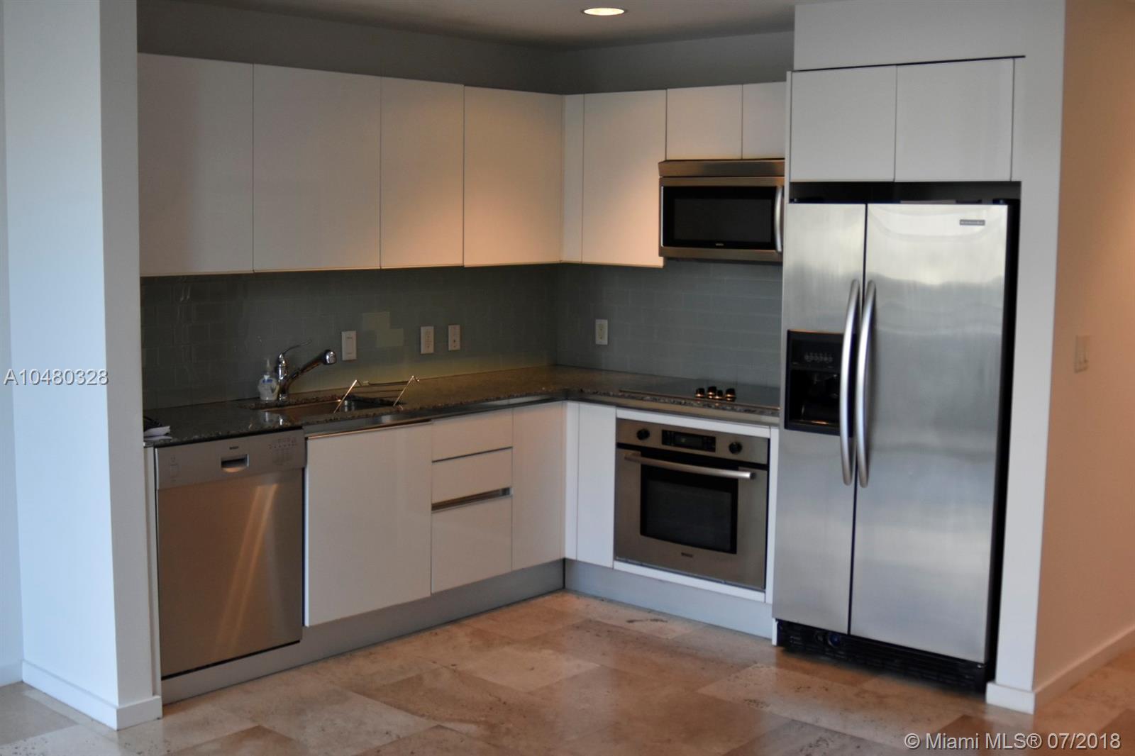 1 bed+ den / 2 baths residence. Italian style kitchen cabinetry, granite counter tops, stainless steel appliances. Washer/dryer inside unit, floor to ceiling windows. Open balcony. Walking distance to restaurants, shopping mall, metromover/metrorail station. Minutes from the performing Arts Center, Bicentennial Park, South Beach. Amenities include concierge valet parking, pool, gym, spa, billiard room, business center and much more.