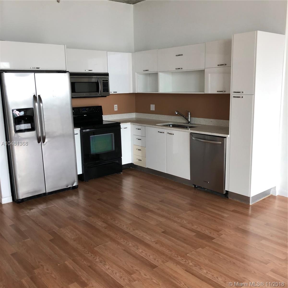 Beautiful loft, freshly painted, laminated wood floors. Great view to the city. This unit has ample space for a bedroom set up and living set up. Italian kitchen cabinets and countertops. Building amenities include, rooftop pool, gym, Jacuzzi, game room, ground level pool, 24 hr. security and concierge. Located within walking distance to Bayfront Park, Performing Arts Center, and arena. Minutes away from SoBe, Grove and the Gables.