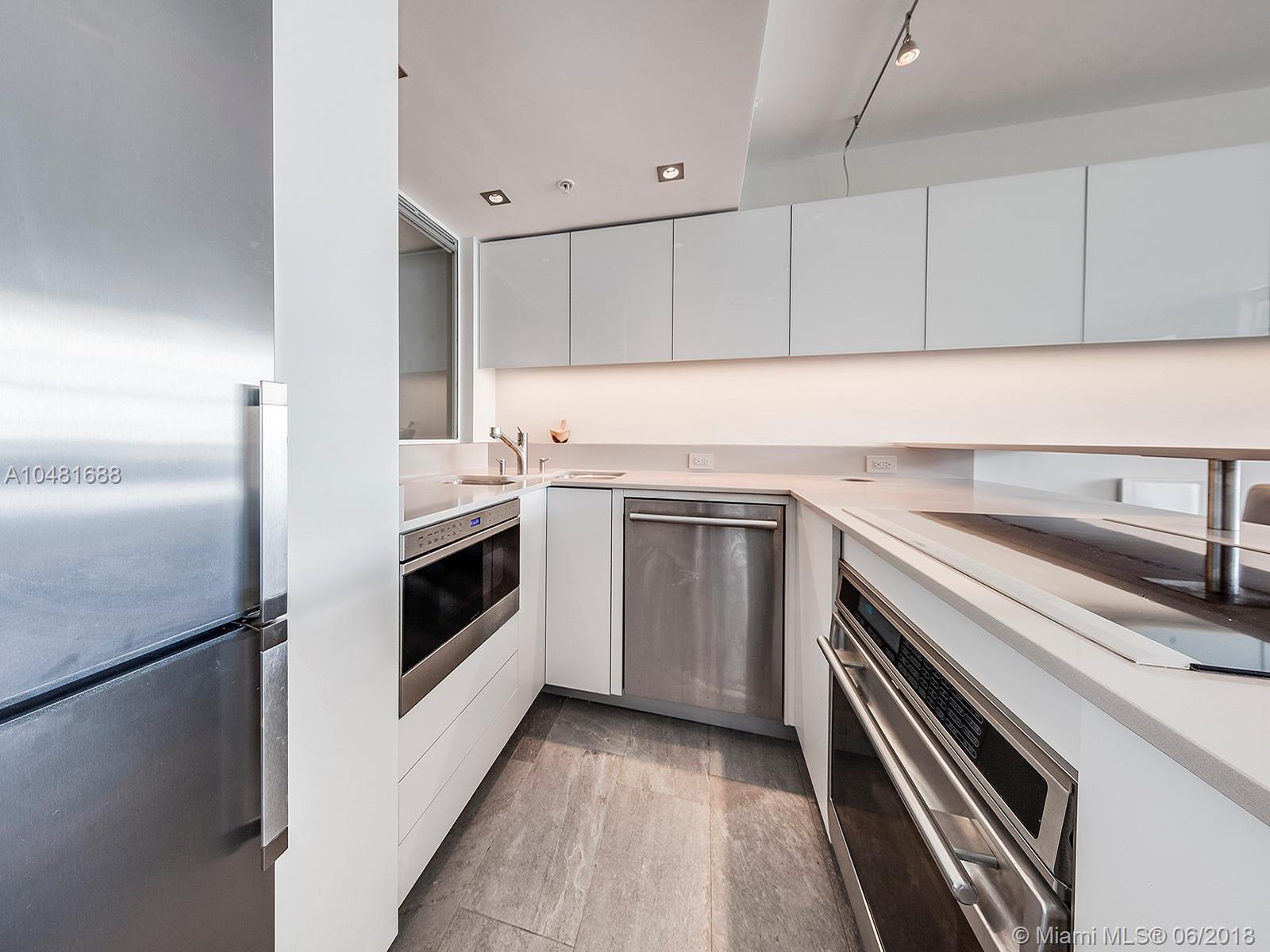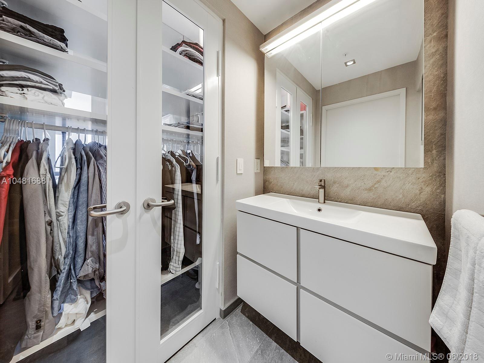 ONE OF A KIND! Brilliantly designed Jr 1 Bdrm and a perfect residence for the Buyer who appreciates quality and custom finishes. Gut renovation with wood cabinetry and glass doors, Italian porcelain tile, Quartz counter tops, top of the line (Bosch & Wolf) appliances, and impact windows and door. Premier "36" line with balcony and the most desirable Southern exposure offering ocean, coastline, and Downtown Miami views. One assigned parking space.