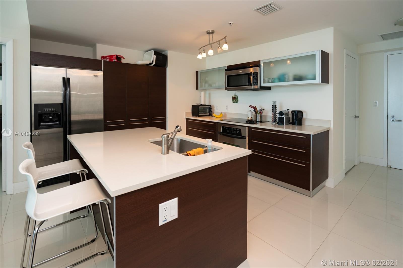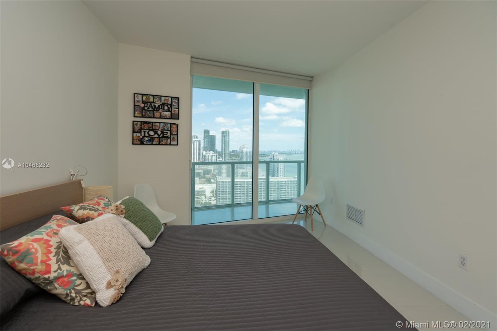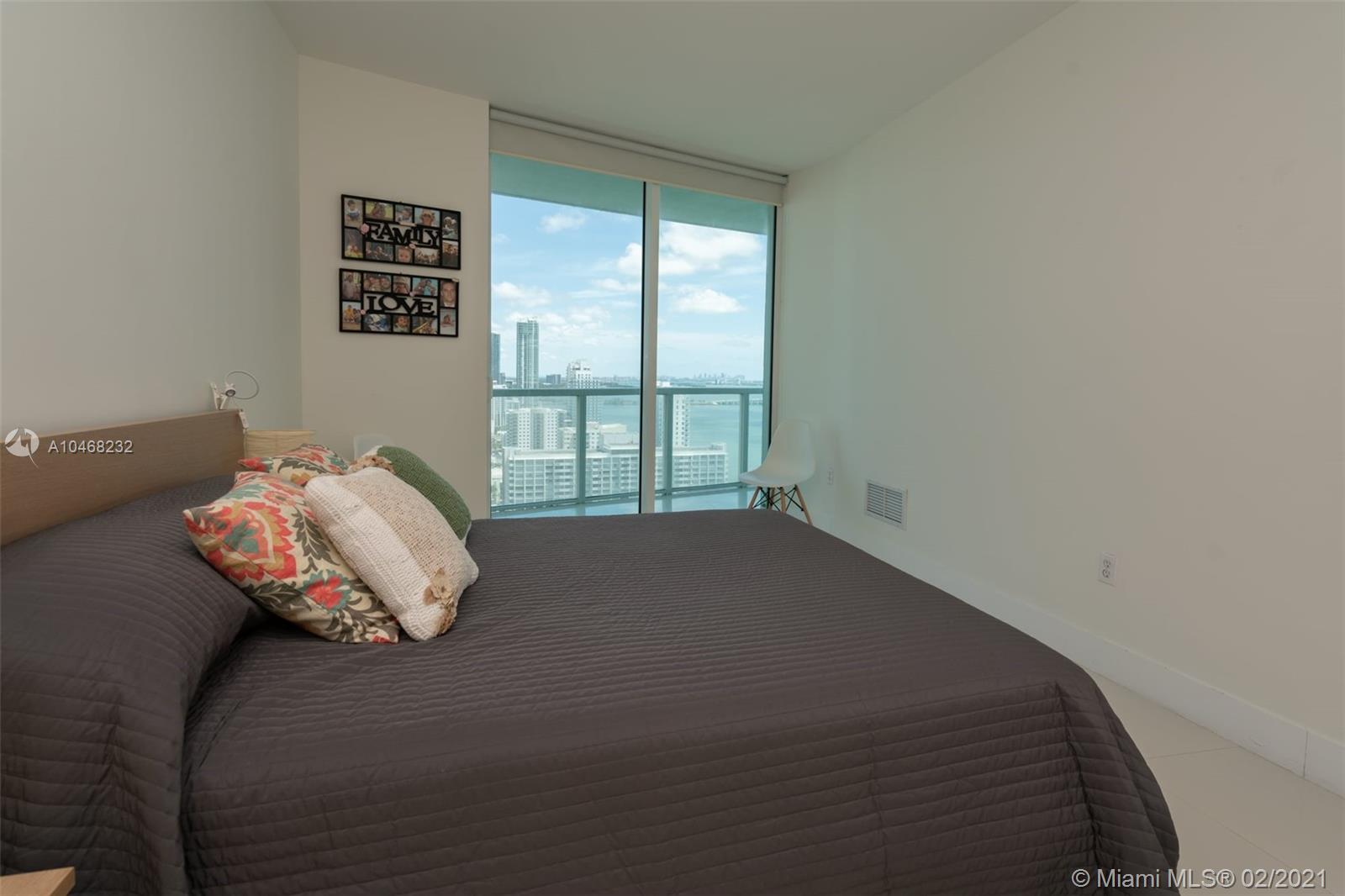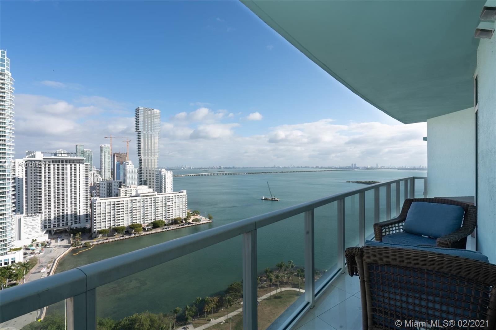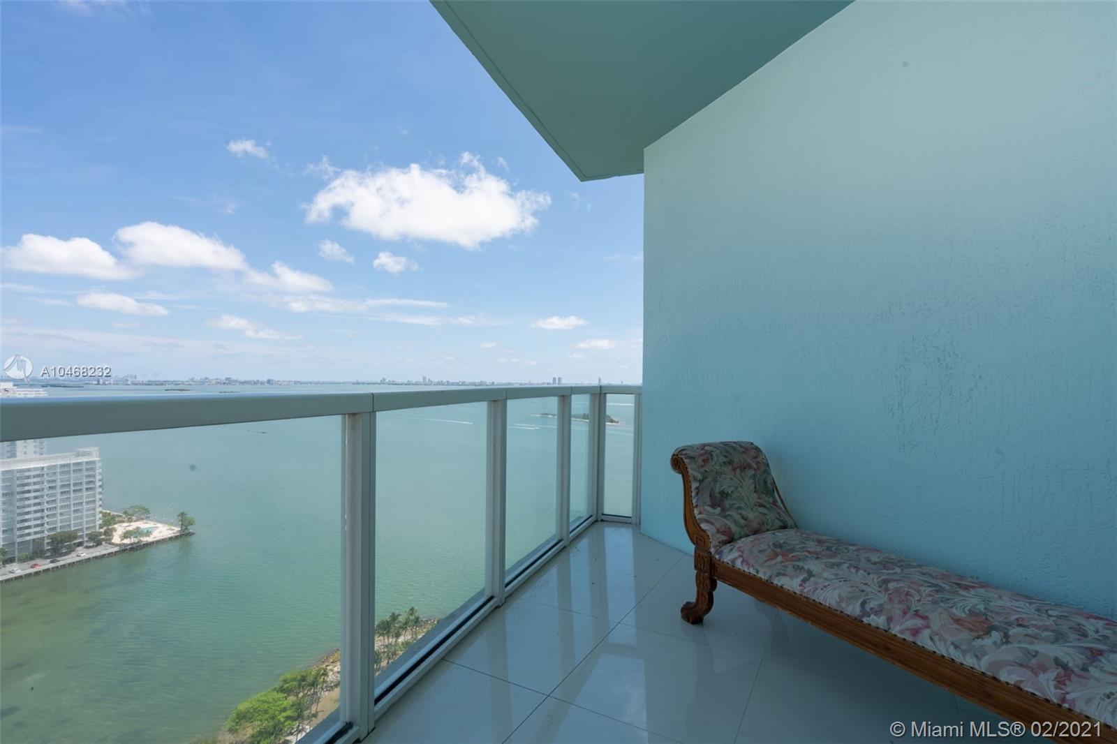 2 bedroom 2 bath Split floorplan. Great views of bay and city. Upgraded Porcelain tile throughout unit and balcony. Lots of closet space and spacious kitchen. Balcony runs length of unit is very roomy. Building has fantastic amenities including 2 pools, incredible gym, sauna, numerous public spaces to unwind and or hold events. Easy commute to Airport, Beaches, Brickell, Downtown, Wynwood and much more. 2 supermarkets are walking distance and lots of great eateries in the area.