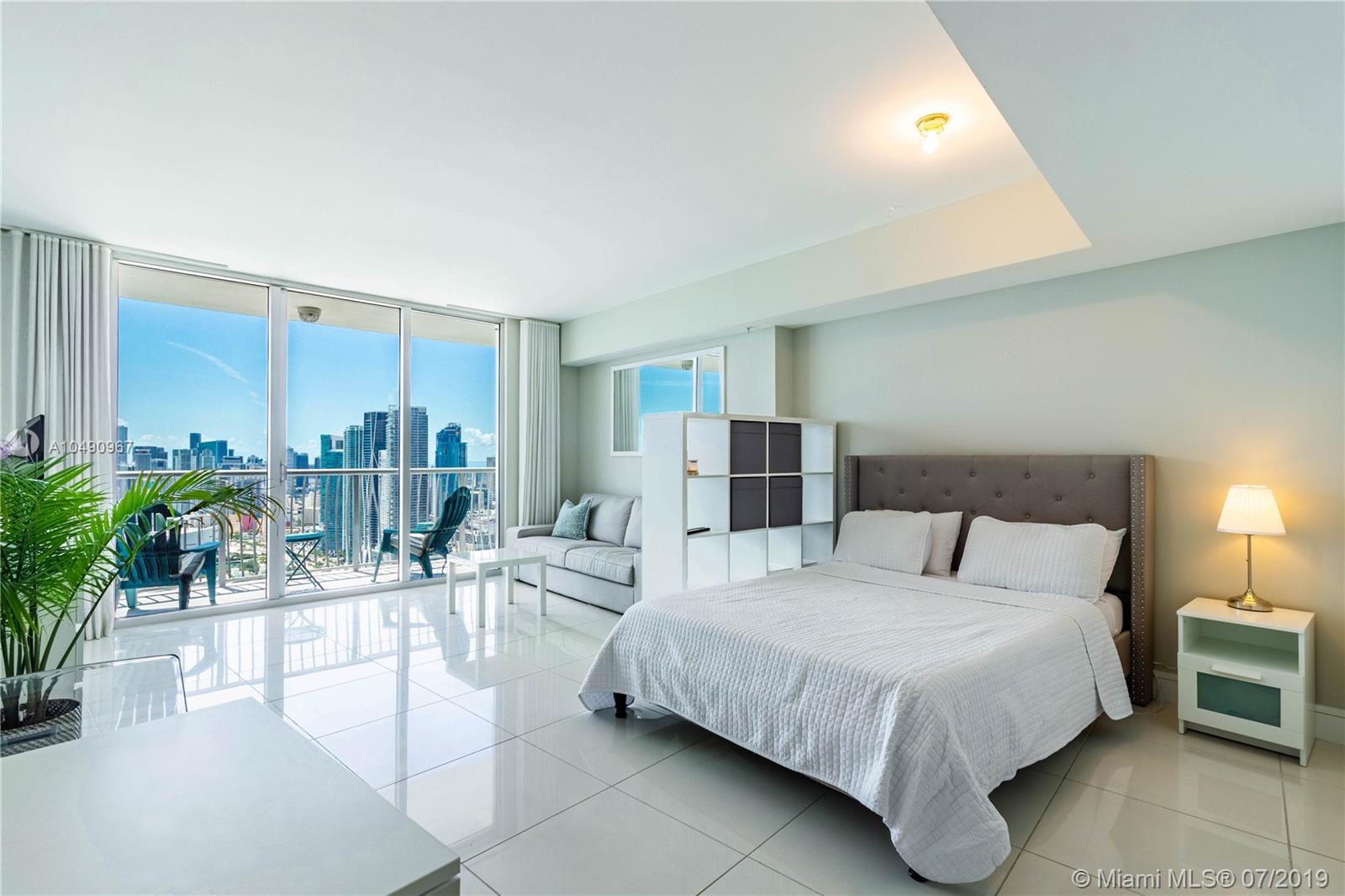 This 55th floor studio unit offers floor to ceiling windows and unobstructed breathtaking views of Biscayne Bay, Miami Beach and Downtown Miami. Its 83 sq. ft. / 7.7 m² balcony is perfect for your relaxing pleasure and makes this unit feel even larger than its listed square footage. Opera Tower is a prestigious building with resort-style amenities and great location, just across the street from the 112,200 Sq.Ft Margaret Pace Park and minutes away from Downtown, Midtown, theaters, museums, marinas, fresh market, elegant shopping, movie theaters, five stars dining, etc. This unit comes with one parking space plus valet parking