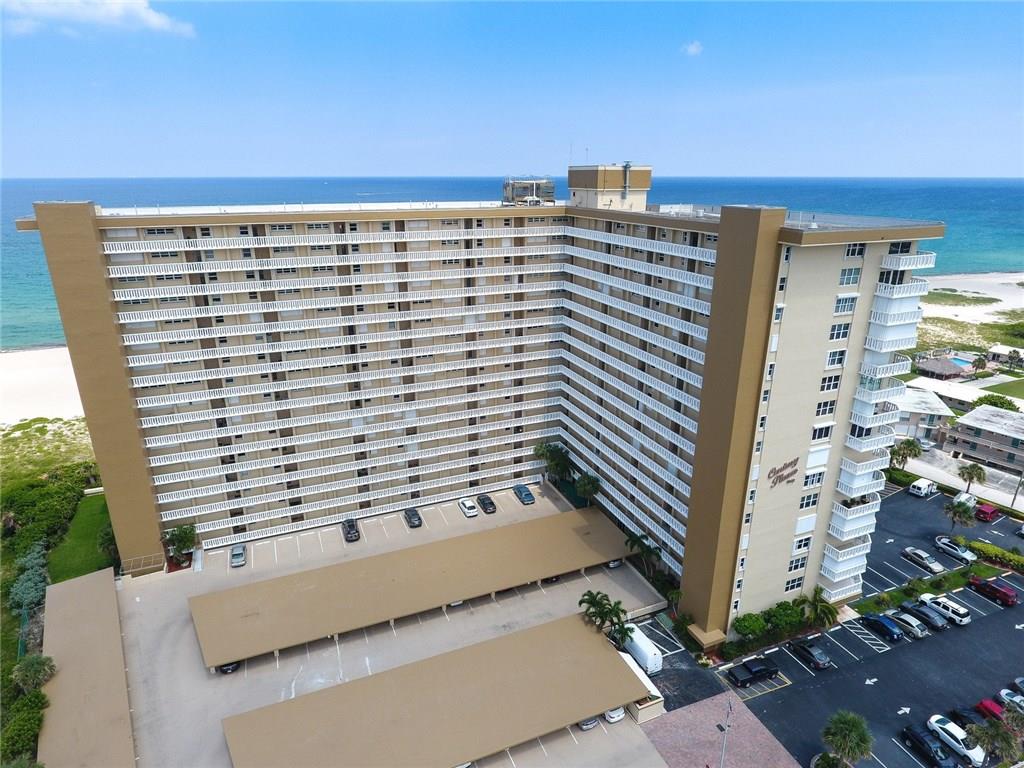 Spectacular unobstructed direct ocean views welcome you the moment you enter this large condo. This rarely available corner unit with wrap around balcony overlooks pristine wide beaches and the heated pool. Enjoy stunning sunrises and soak in the ocean breezes. The split floor plans offers two master suites with ocean views. Washer/dryer in the condo for your convenience. Make this spacious condo your dream beach place by adding your personal touches. Fabulous Restaurants and shops are minutes away.