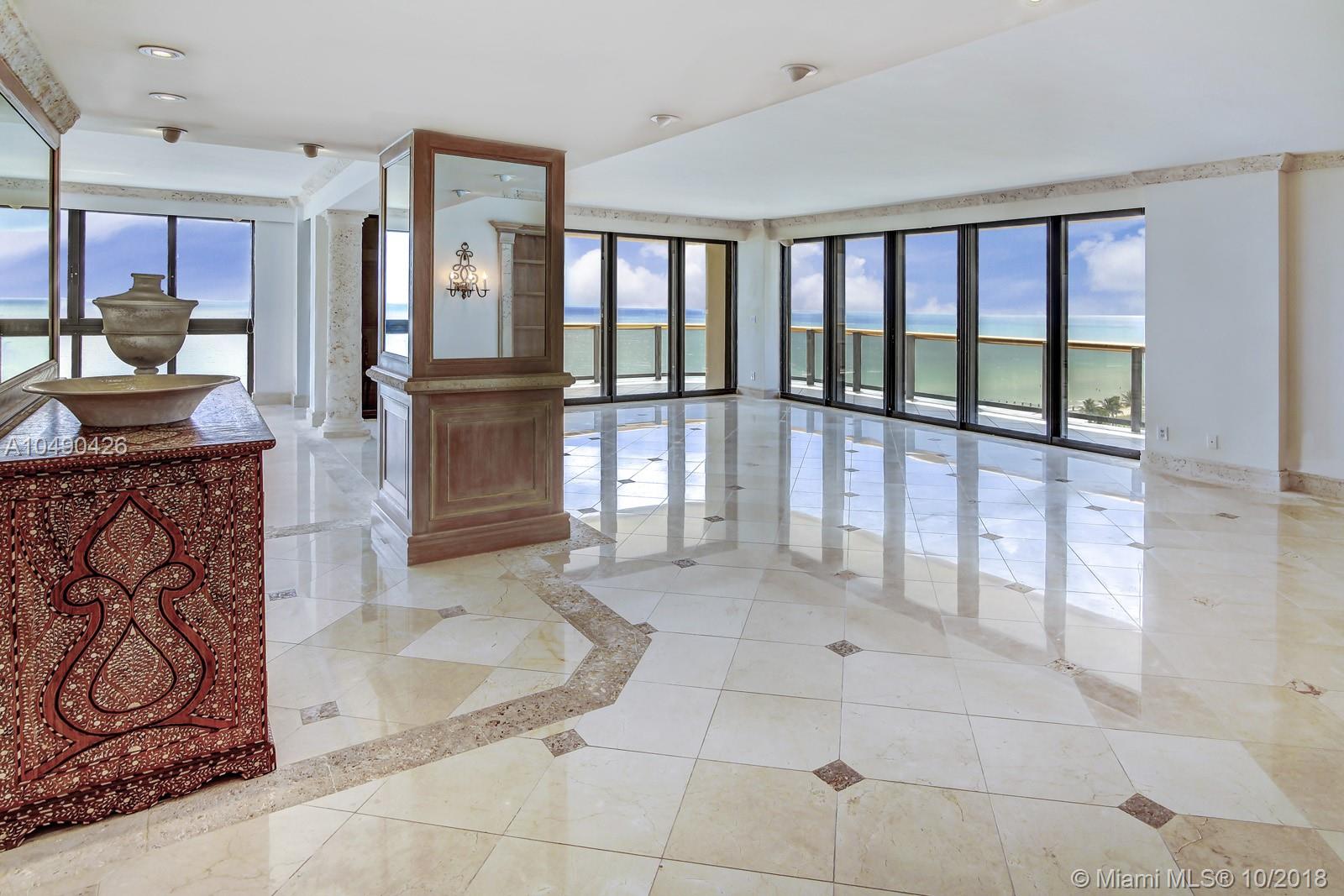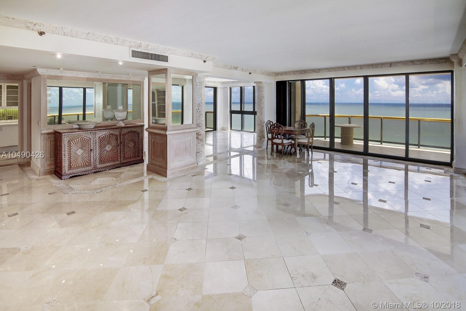 Breathtaking direct ocean & city skyline views are a signature feature of this wrap around, south- east corner residence nestled on the 11 floor of the premier ocean front Bal Harbour Tower. Accessed by private elevator this 3,500 sq ft apartment features 3 beds, 4.5 baths & separate staff room. Elegant marble floors & stone accents in the formal /living areas. Kitchen quarter with dining alcove overlooking ocean. High end commercial grade appliances; Traulsen fridge, Viking baking stove & cook-top, Wolf microwave. Custom hand painted Moroccan tiles in the kitchen & master bath. Sumptuous master suite with large walk in closet. A choice location building within walking distance to Bal Harbour shops offers; renowned private restaurant, concierge, pool & beach service, fitness &valet.