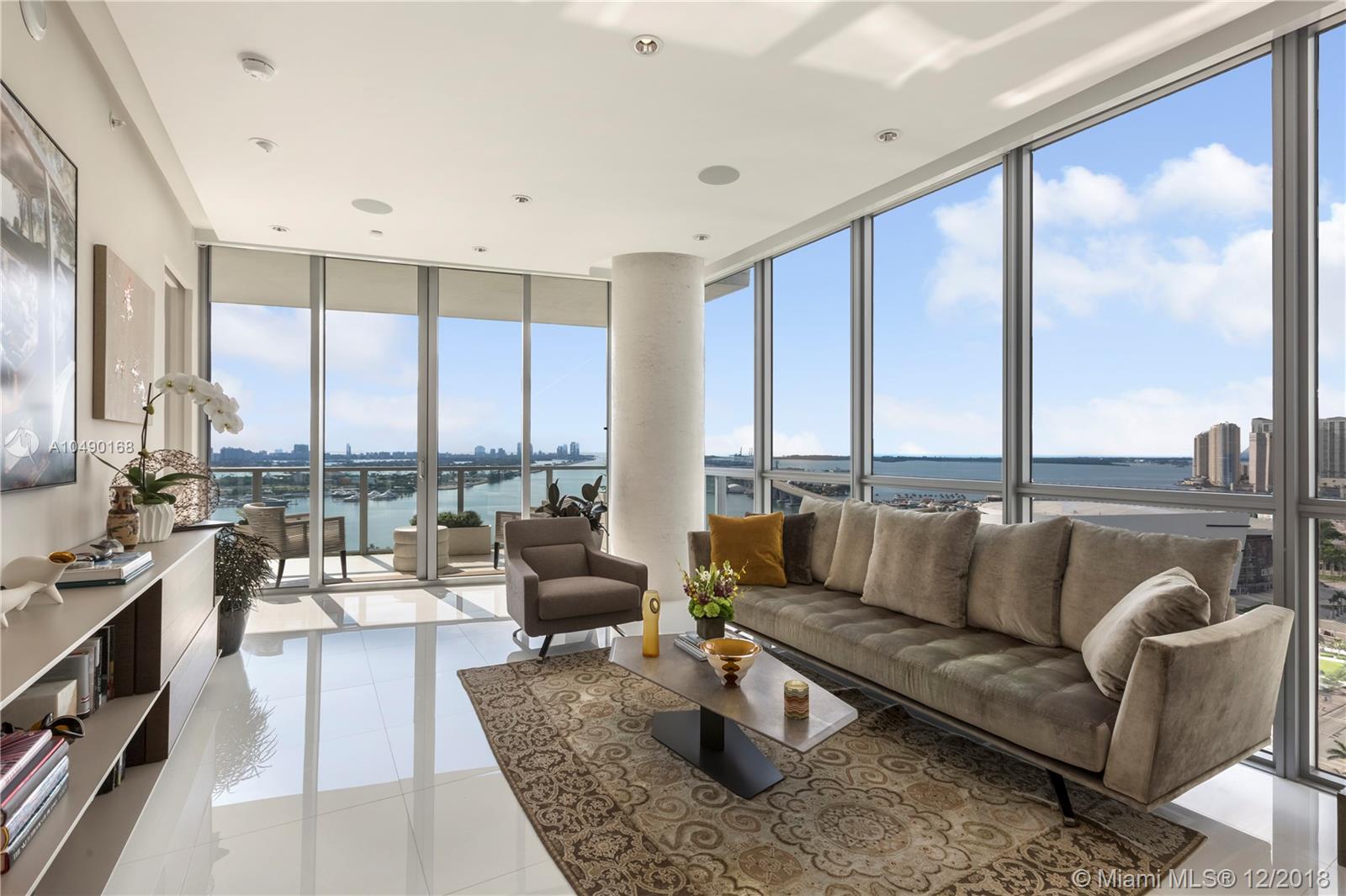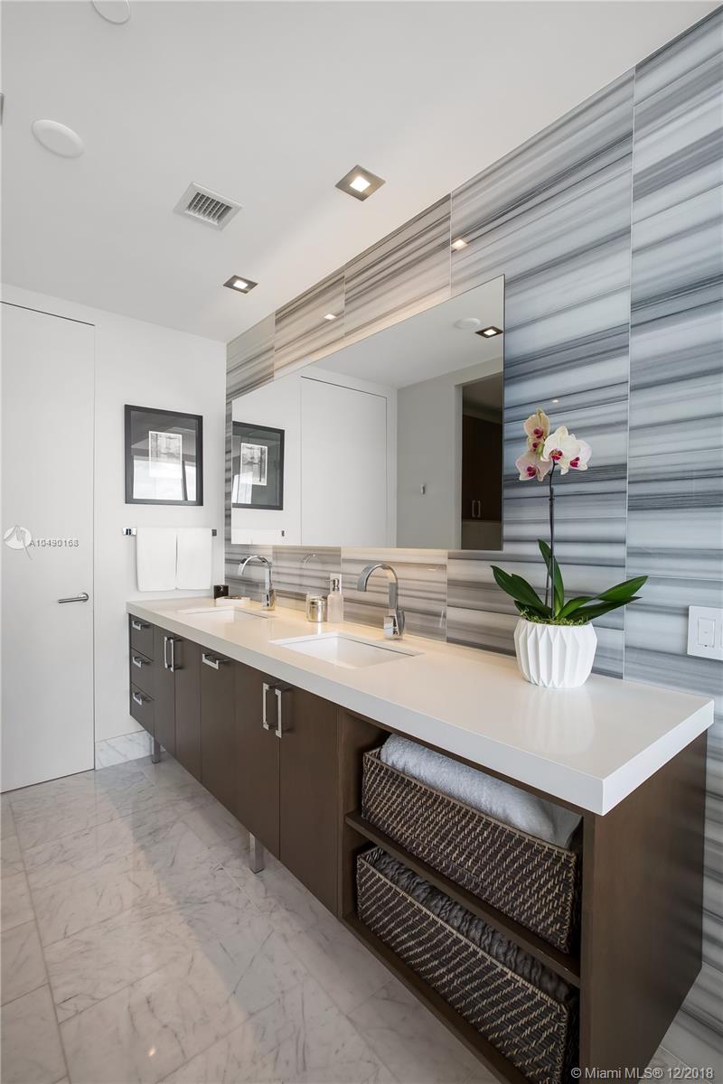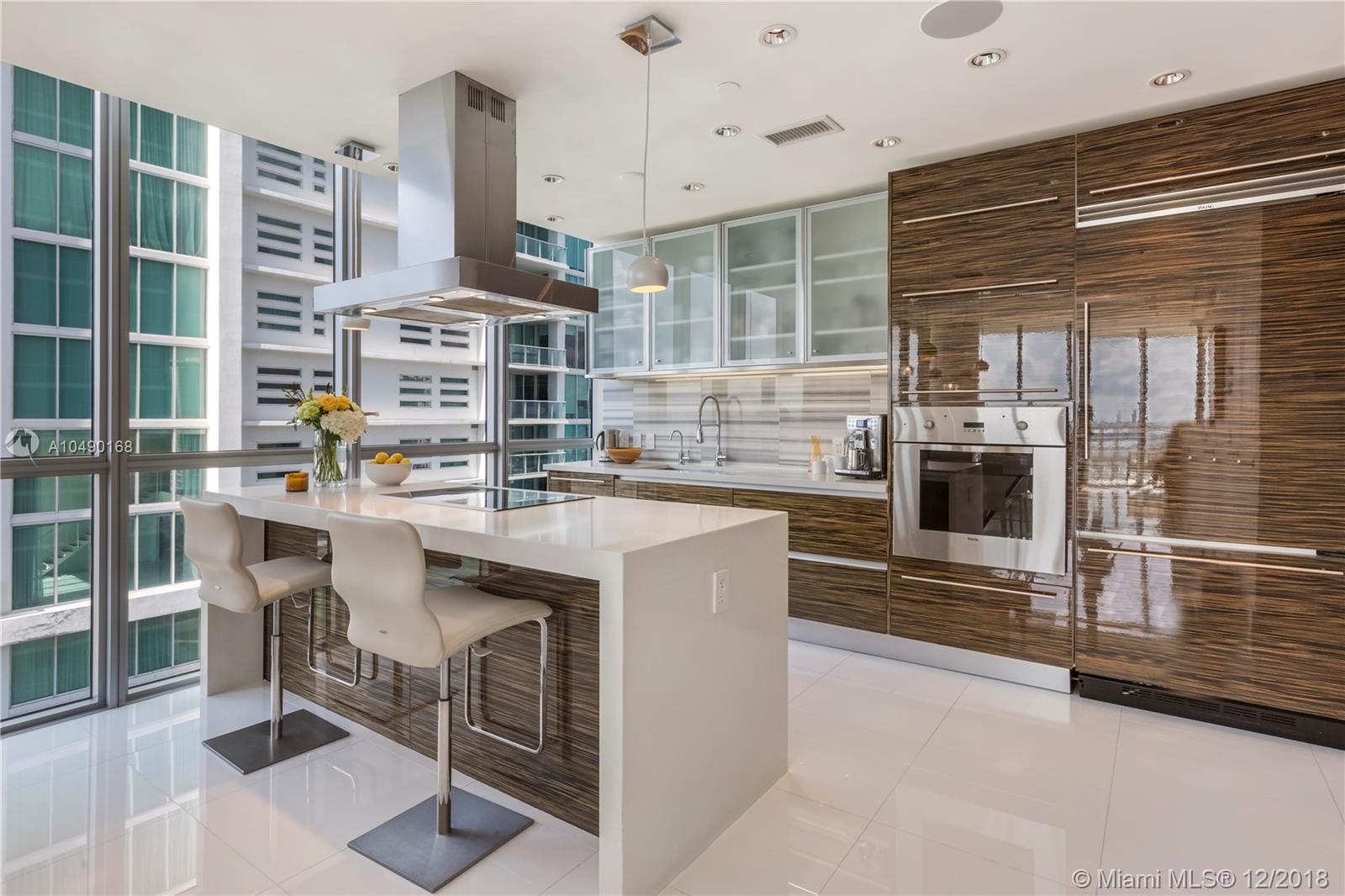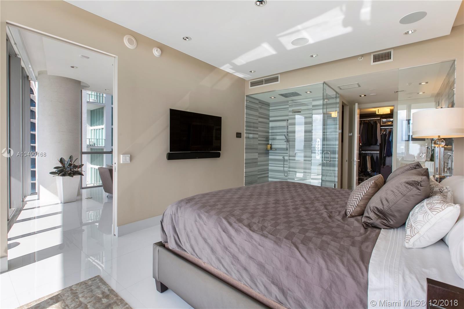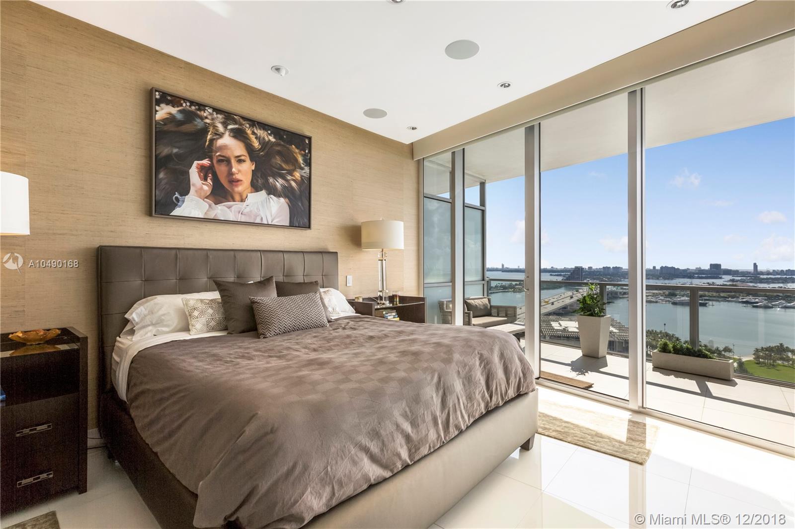 Best priced and custom designed 01 unit in the building with over $300,000 in upgrades. Stunning views of Downtown Miami, the Miami Beach skyline, and steps away from the American Airlines Arena and Perez Art Museum. Floor-to-ceiling windows with 10-foot ceilings. Custom finishes, including Cattelan Italia dining and kitchen lighting, custom venetian plaster, complete master-bath renovation featuring Aquabrass Spa shower (a $40,000 upgrade). Drop ceilings throughout with spot lights and LED soft lighting. Control 4 home automation system (shades, alarm, video, music, AC), in ceiling multi-channel audio in bedrooms and living room. Multiple digital touch control panels. Motorized shades with blackout shades in bedrooms. Infinity-edge sunrise swim spa. Brand new AC units.