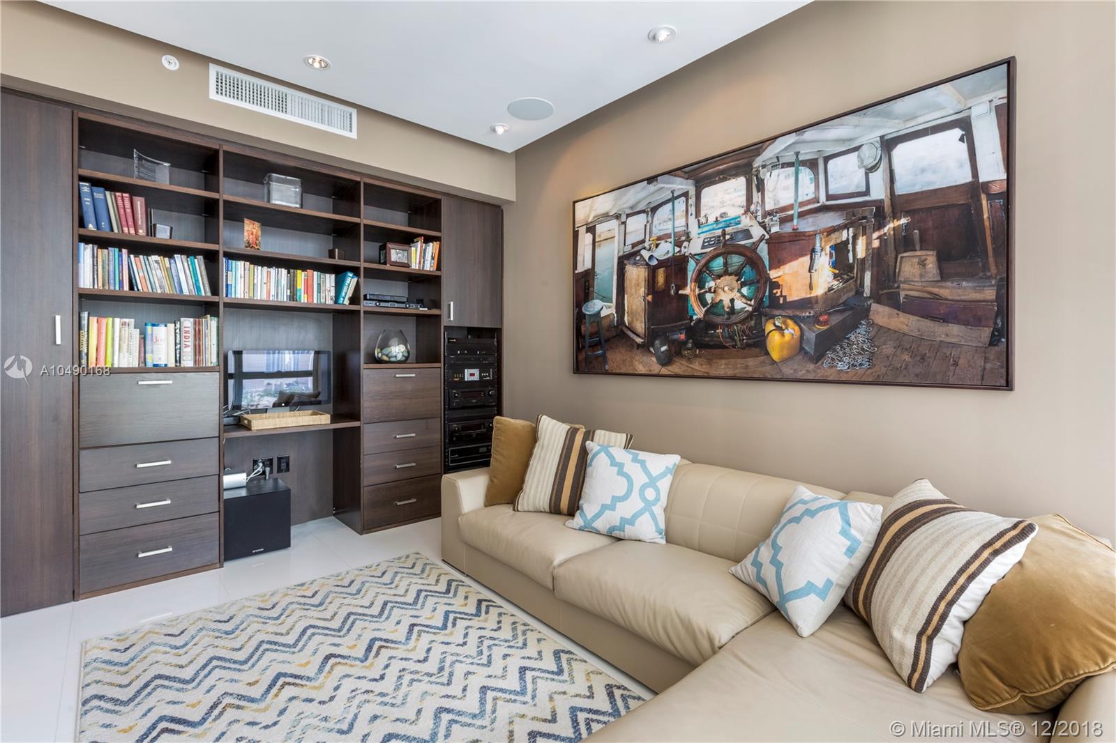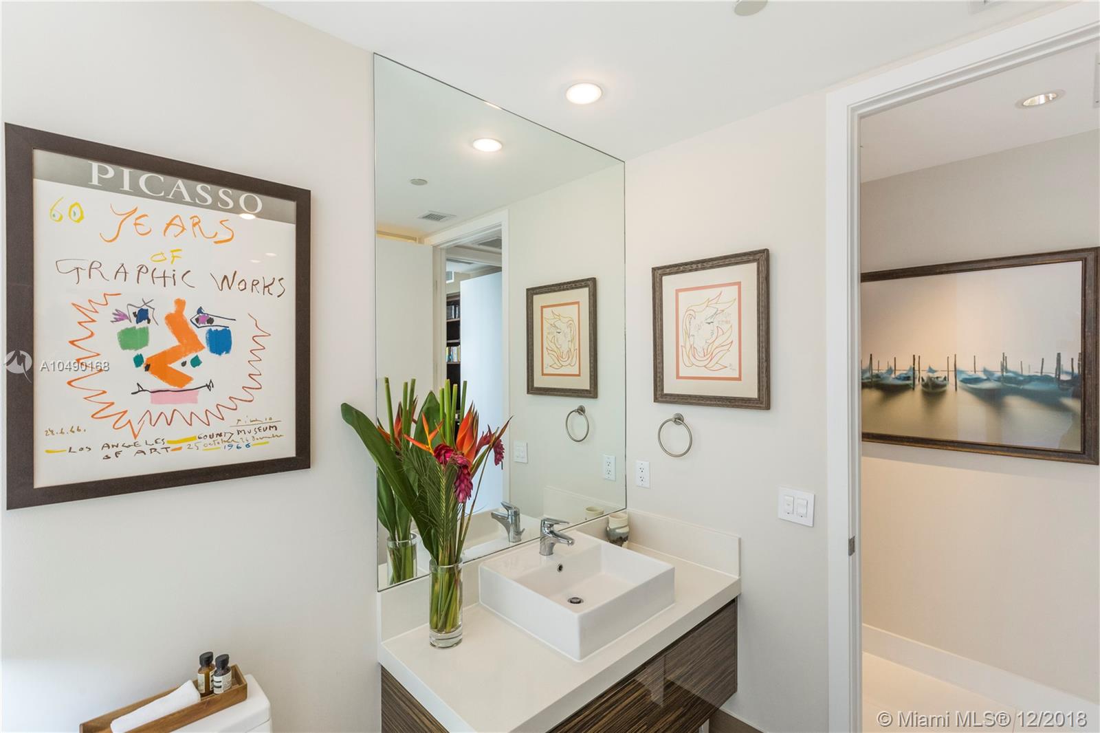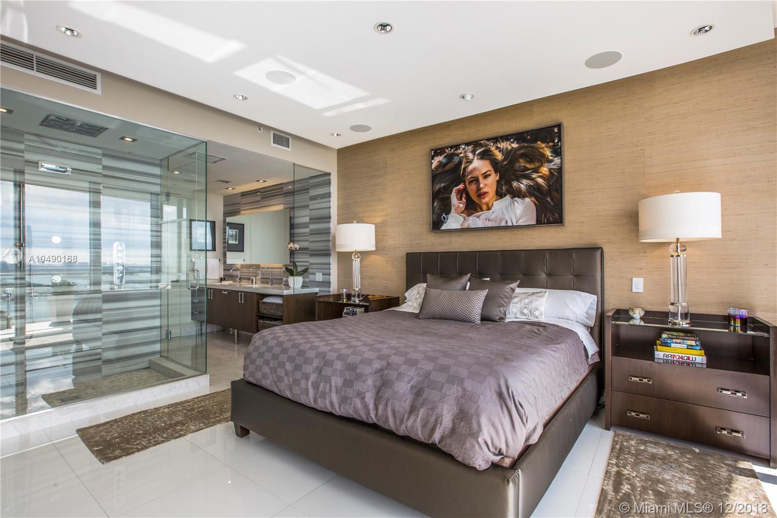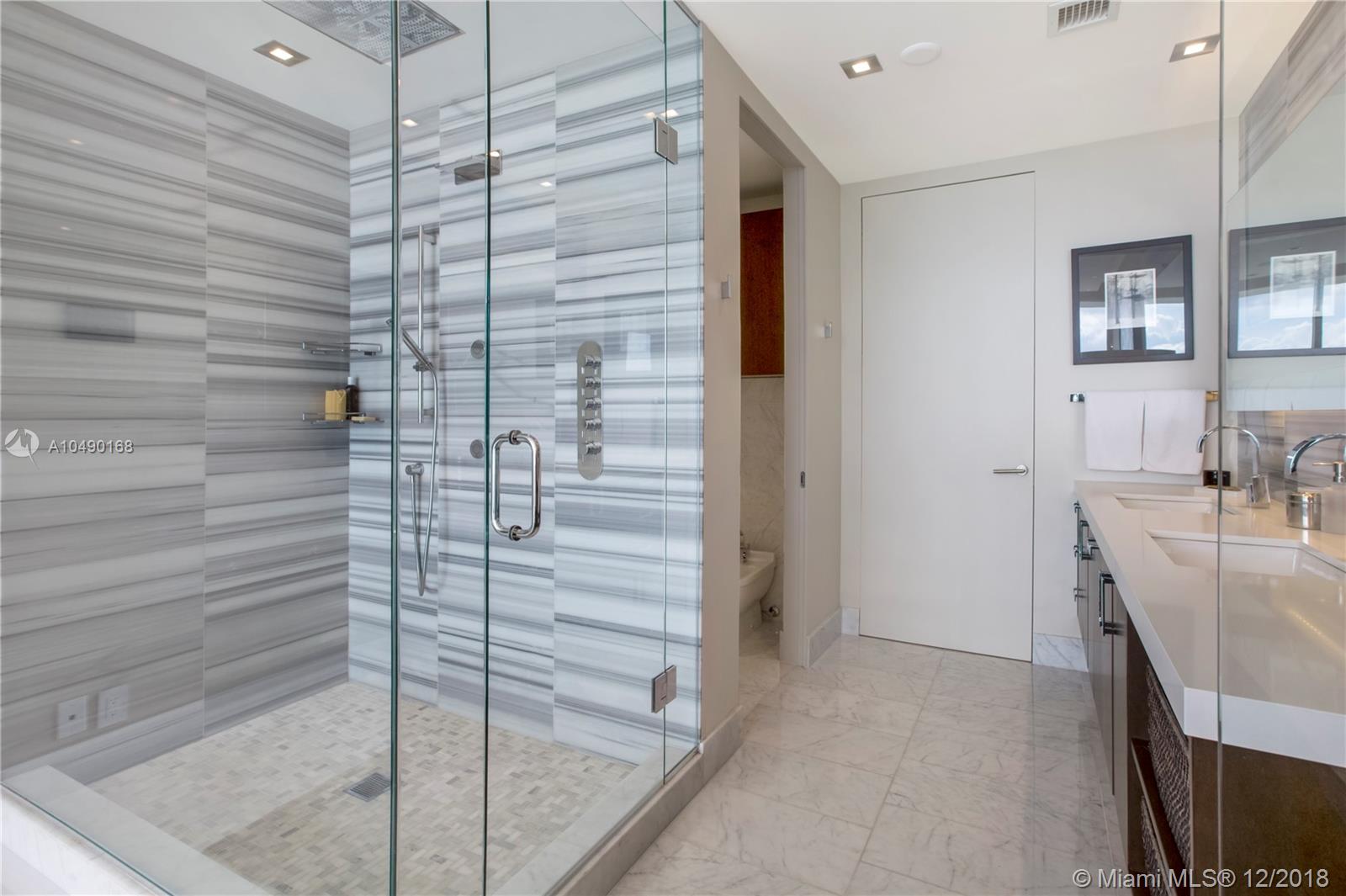 Best priced and custom designed 01 unit in the building with over $300,000 in upgrades. Stunning views of Downtown Miami, the Miami Beach skyline, and steps away from the American Airlines Arena and Perez Art Museum. Floor-to-ceiling windows with 10-foot ceilings. Custom finishes, including Cattelan Italia dining and kitchen lighting, custom venetian plaster, complete master-bath renovation featuring Aquabrass Spa shower (a $40,000 upgrade). Drop ceilings throughout with spot lights and LED soft lighting. Control 4 home automation system (shades, alarm, video, music, AC), in ceiling multi-channel audio in bedrooms and living room. Multiple digital touch control panels. Motorized shades with blackout shades in bedrooms. Infinity-edge sunrise swim spa. Brand new AC units.