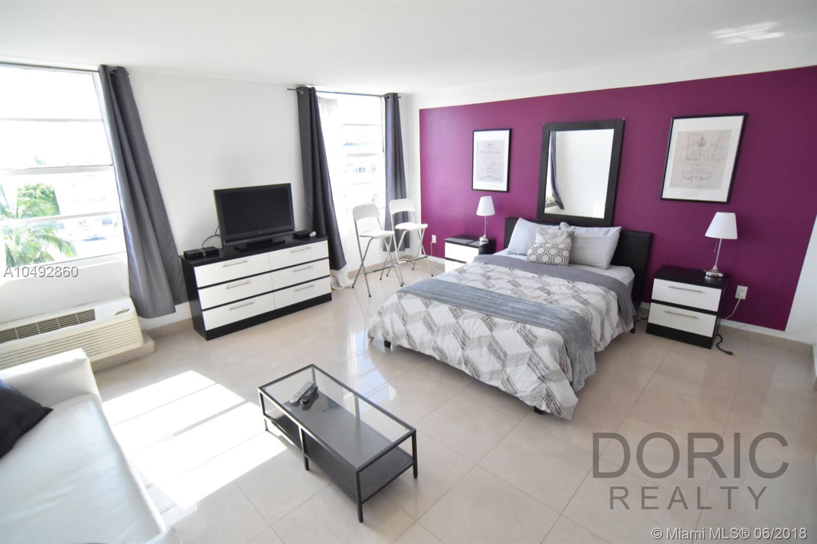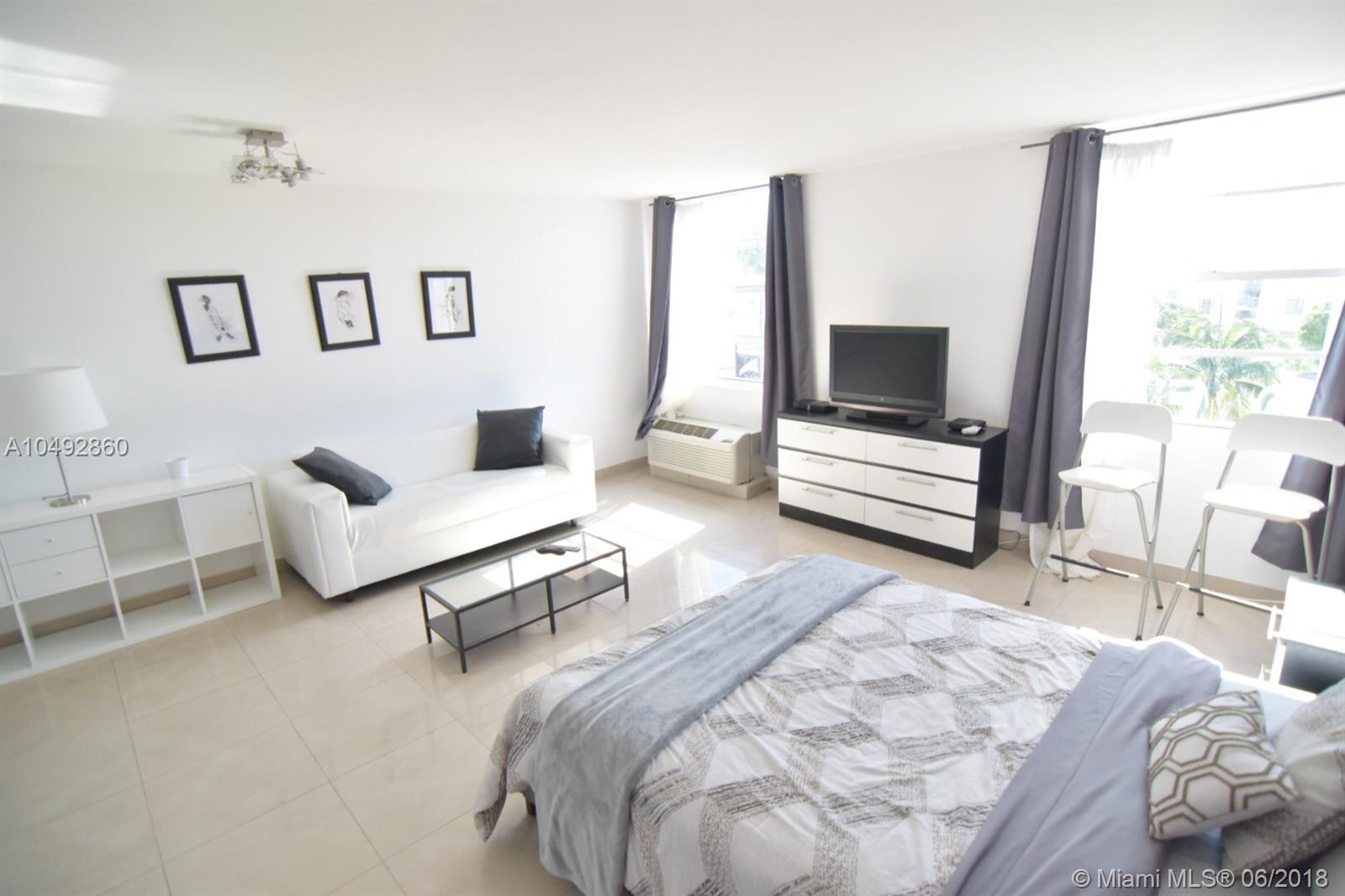 Spacious furnished and remodeled turnkey Studio, updated kitchen with subzero refrigerator, granite countertops, stainless steel appliances, remodeled bathroom, newly tiled floors. Centrally located on Washington Ave just steps away from shopping, clubs, bars, dining, and a great cafe/deli downstairs to enjoy the atmosphere. Beach is 2 blocks away!