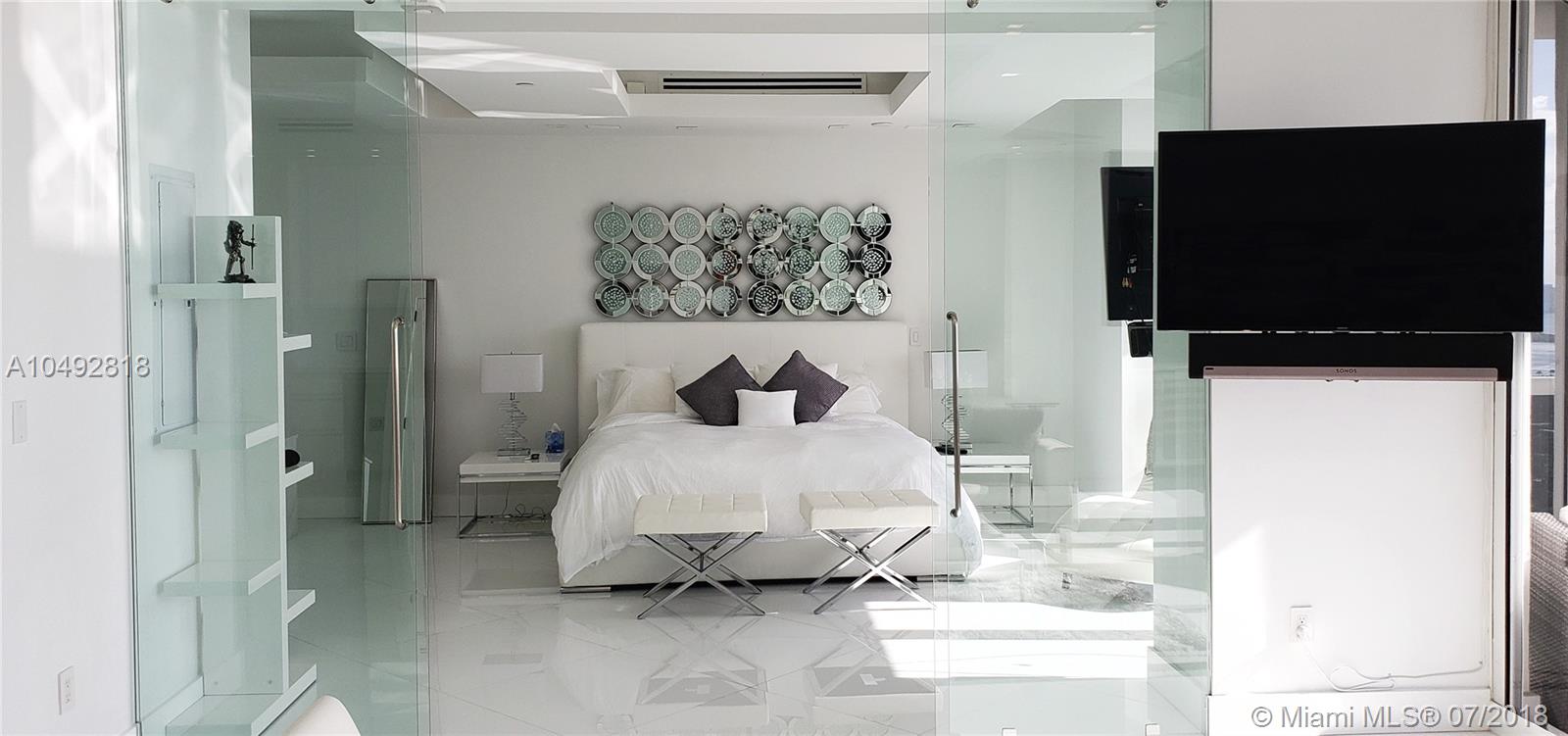 Spectacular unobstructed inter-coastal view and Miami city skyline from this impeccably designed 1 bedroom, 2 bathroom PH at the Blue Diamond. This unique penthouse features open kitchen with stainless steal appliances, floor to ceilings glass windows with motorized window treatments, white marble floor throughout, Led custom lighting walk-in closet and a big balcony. Unit is offered turn key. This beautiful ocean front building offers 1st class amenities: direct access to the beach+beach service, tennis courts, 24 hr security, concierge, oceanside clubhouse,gym spa, hot tubs, steam room , cafe' by the pool and much more. Easy to show.