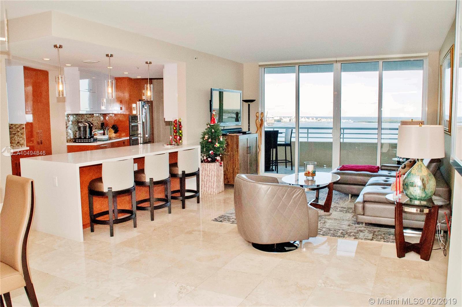 NEW SALES LISTING - Island living at a remodeled 1700+ sq/ft. 2 bedroom 2 and a half bathroom unit w/ stunning bay, port, Fisher Island, and Key Biscayne views, a completely private balcony, marble flooring in living/dining areas, Italian porcelain in bedrooms, an open concept kitchen (with high end Jenn-air appliances) with access to the balcony, a stunning master bathroom, 2 large built-out walk-in closets, a huge master suite w/ balcony access, & more. Two Tequesta has a state of the art fitness center (w/ racquetball, basketball, cross-fit, massage & aerobics areas), BBQ's/outdoor kitchen, a playroom, a resort style bayside pool/hot tubs, tennis, two conference rooms, free 24/7 valet and security, & more. FOR SHOWINGS PLEASE CALL/TEXT LISTING AGENT RUSSELL BROOKE