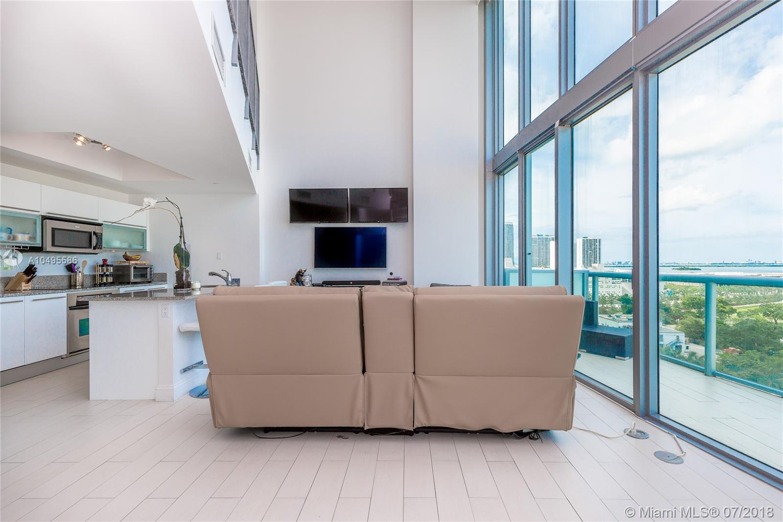 JUST REDUCED!!! Spectacular 1BR & 1.5 BA 2-story loft at Marina Blue with over 1000 sf of living area and 20-foot glass walls offering panoramic views of the Biscayne Bay , AA Arena, New Museum Park & Downtown from all rooms. This loft features: white porcelain floors, a 2nd floor master BR overlooking the 2-story living/dining area below, a granite & SS kitchen & ½ bath. The huge master bath has 2 sinks, tub & large shower. Amenities include 2 pools, gym, business center,sand volleyball ,putting green , & more!.
