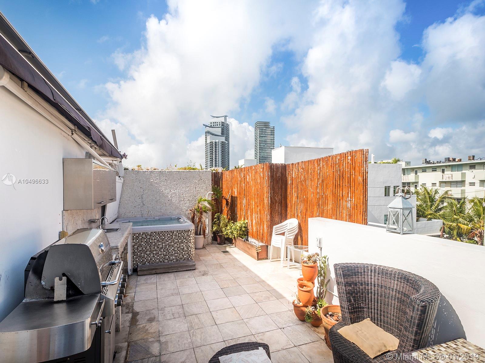 Back on the Market. Newly painted and refreshed. This is an amazing & unique South of 5th property! Sleek, modern, architecture with an incredible rooftop terrace with an outdoor kitchen, big Jacuzzi, outdoor shower, retractable awnings & tons of room. Two bedrooms plus a den. Multi-level townhouse with the master suite occupying the full top floor. It even has a private two car garage. European kitchens with stainless appliances, limestone flooring & lots of windows & light. Walk to South Point Park, marina & restaurants. Priced to sell.