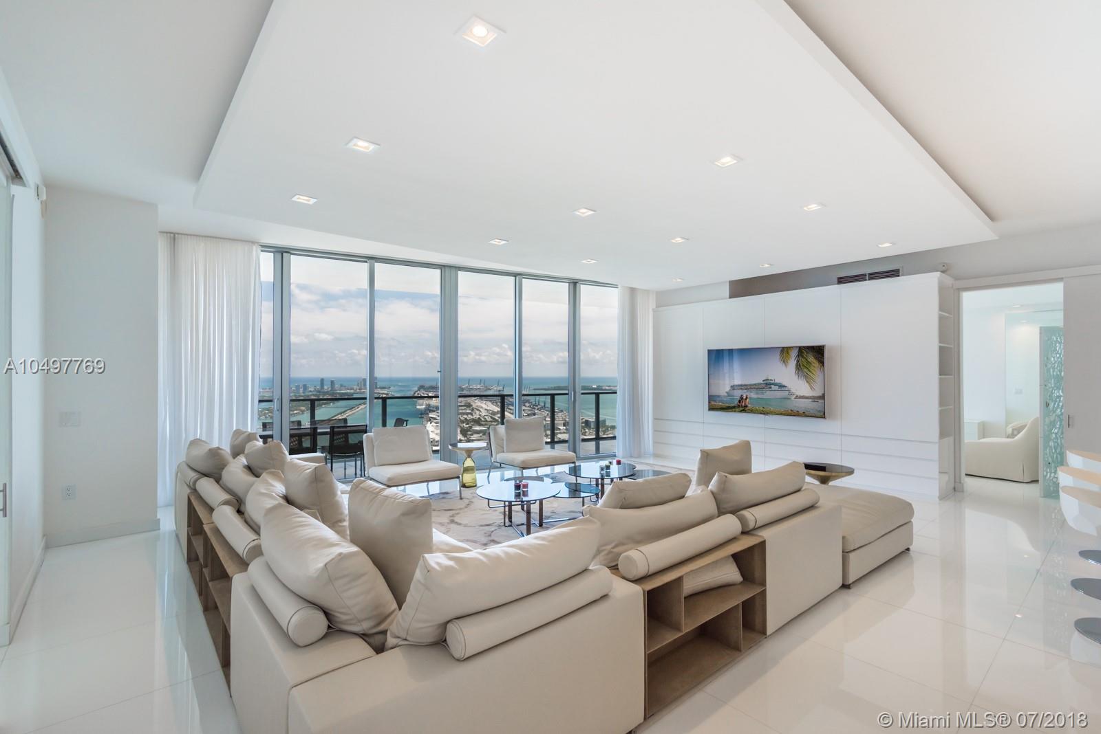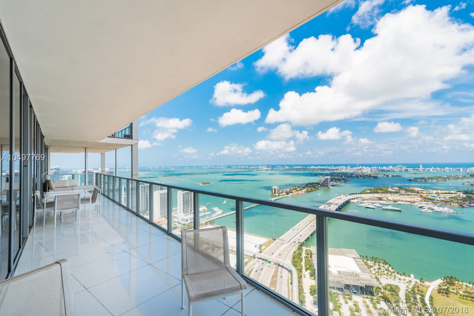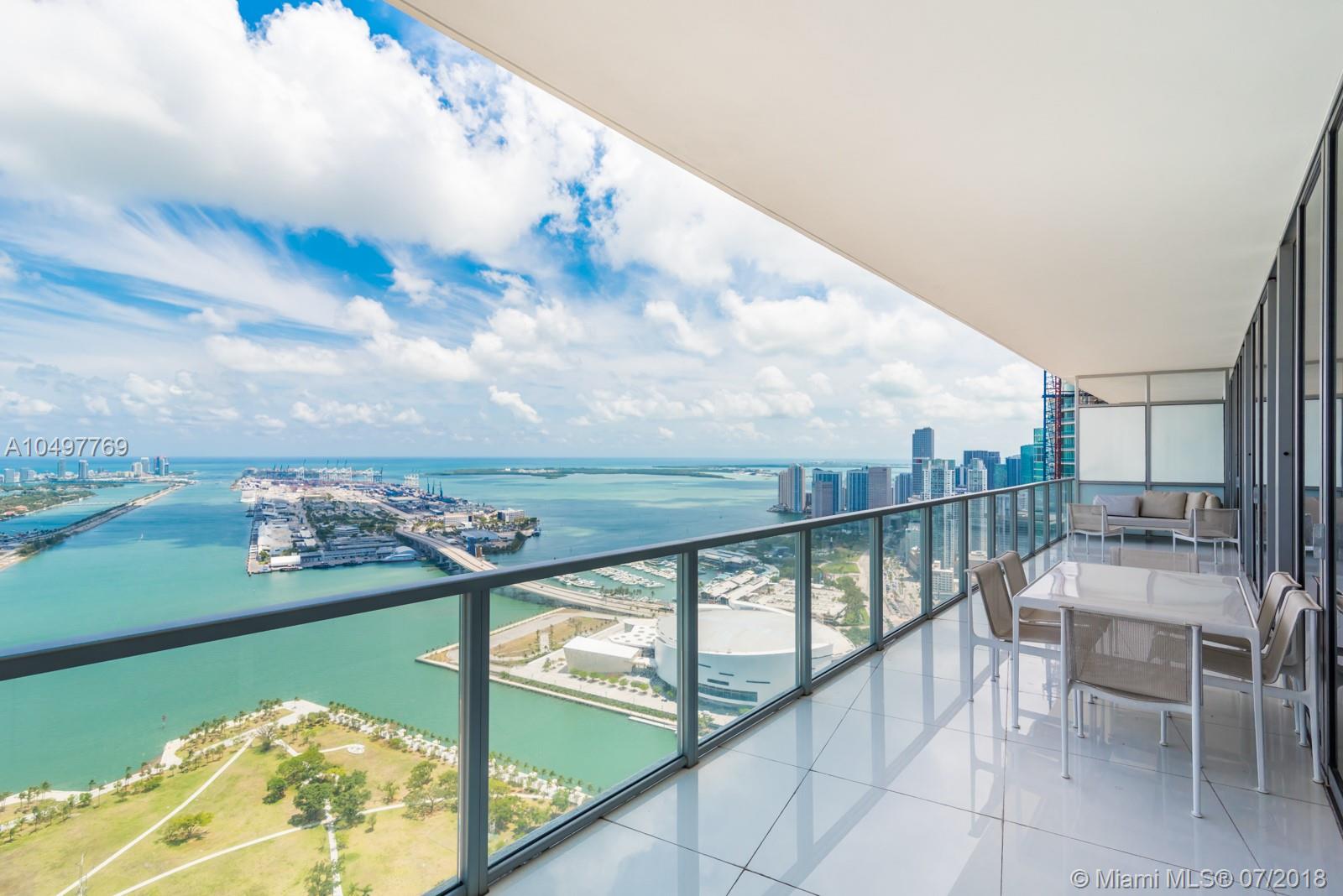 One of a kind combo unit at Marquis Miami. This designer finished 4 bds/4.5 ba 03/04 combo has one of the most spectacular views in the entire city. This sky home has 2,975 sq.ft. of interior space and has one of the largest terraces in the building. Finished with white glass floors throughout including showers and baths, white lacquer cabinets in kitchen and baths, upgraded lighting throughout this unit, over sized laundry room with 2 washers and 2 dryers, built ins and more. This unit is perfect for entertaining with a total of 4 elevators that open in right into the unit. Marquis has sunrise lap pool and afternoon pool and a stunning pool deck and full gym. Unit has 2 deeded parking spaces and more.