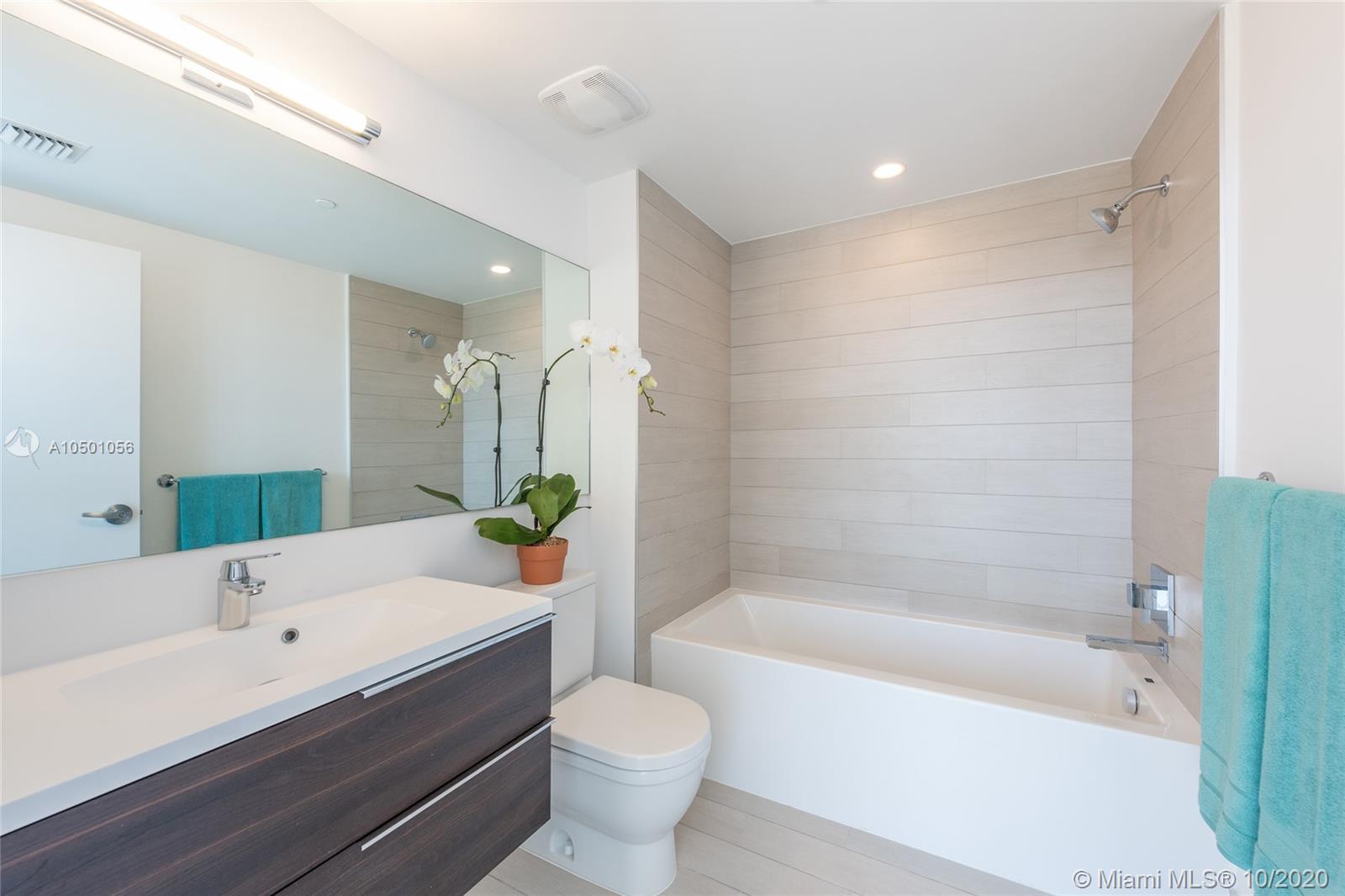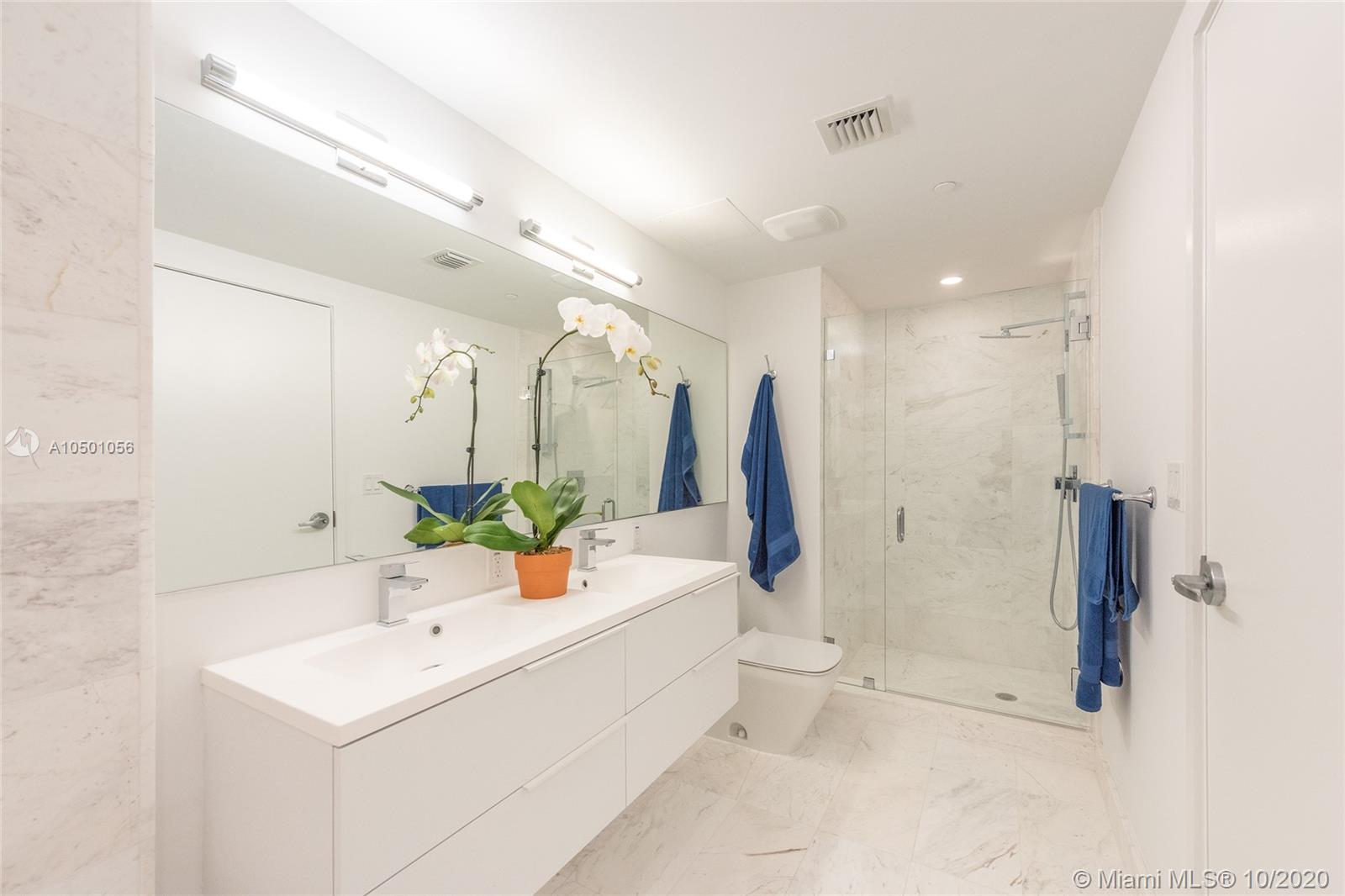 Motivated Seller!! Stunning new unit on the top floor of Kai condo in Bay Harbor. No one has ever lived in it. 2BRs plus den (can be easily converted in 3rd bedroom), 3 full baths. Largest 2BR in building, white porcelain floors throughout, 10 ft ceilings, floor to ceiling windows, kitchen w/Bosch appliances, Mia Cucina cabinetry and Quartz countertops. Terrace runs the entire width of the unit. All hurricane impact windows and doors, 2 parking spots, 1 storage bin. This boutique luxury waterfront building offers its residents 24hr security, roof top pool with Jacuzzi, BBQ and more. Walking distance to the beach and just steps from the famous Bal Harbour Shops & fine dining. Dock slips are available.