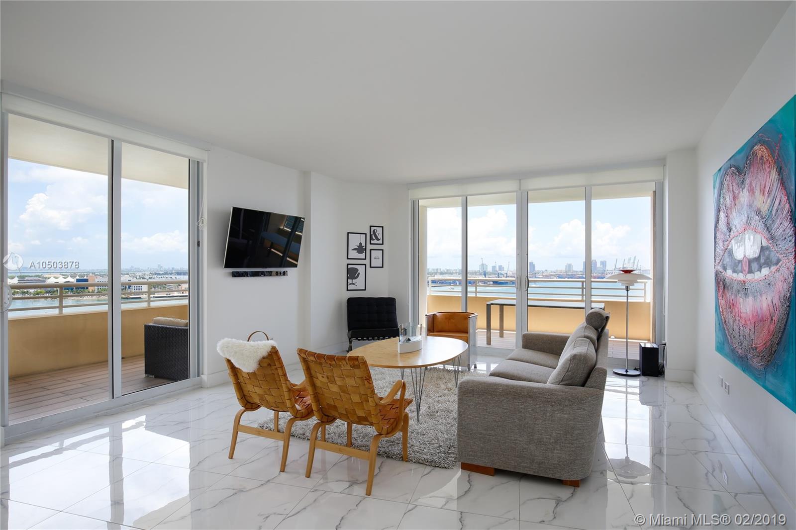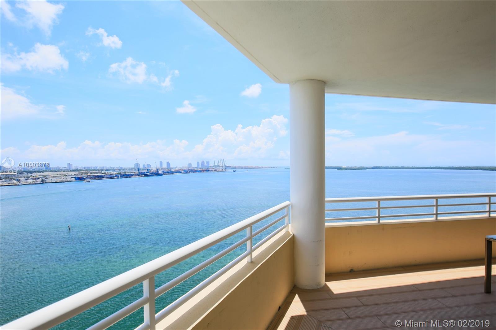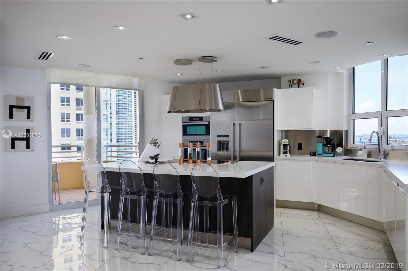 This beautifully renovated corner unit at Two Tequesta features water views from every room! Three bedrooms and two and a half baths. Fantastic open kitchen design by Porcelanosa with Miele appliances, induction cooktop, large Thermador side by side fridge and freezer, and two dishwashers. Perfect for entertaining. Spectacular views of Port of Miami, Fisher Island, Miami Beach, and downtown Miami skyline. Building amenities gym, indoor basketball and pool area equipped with barbecue grills.