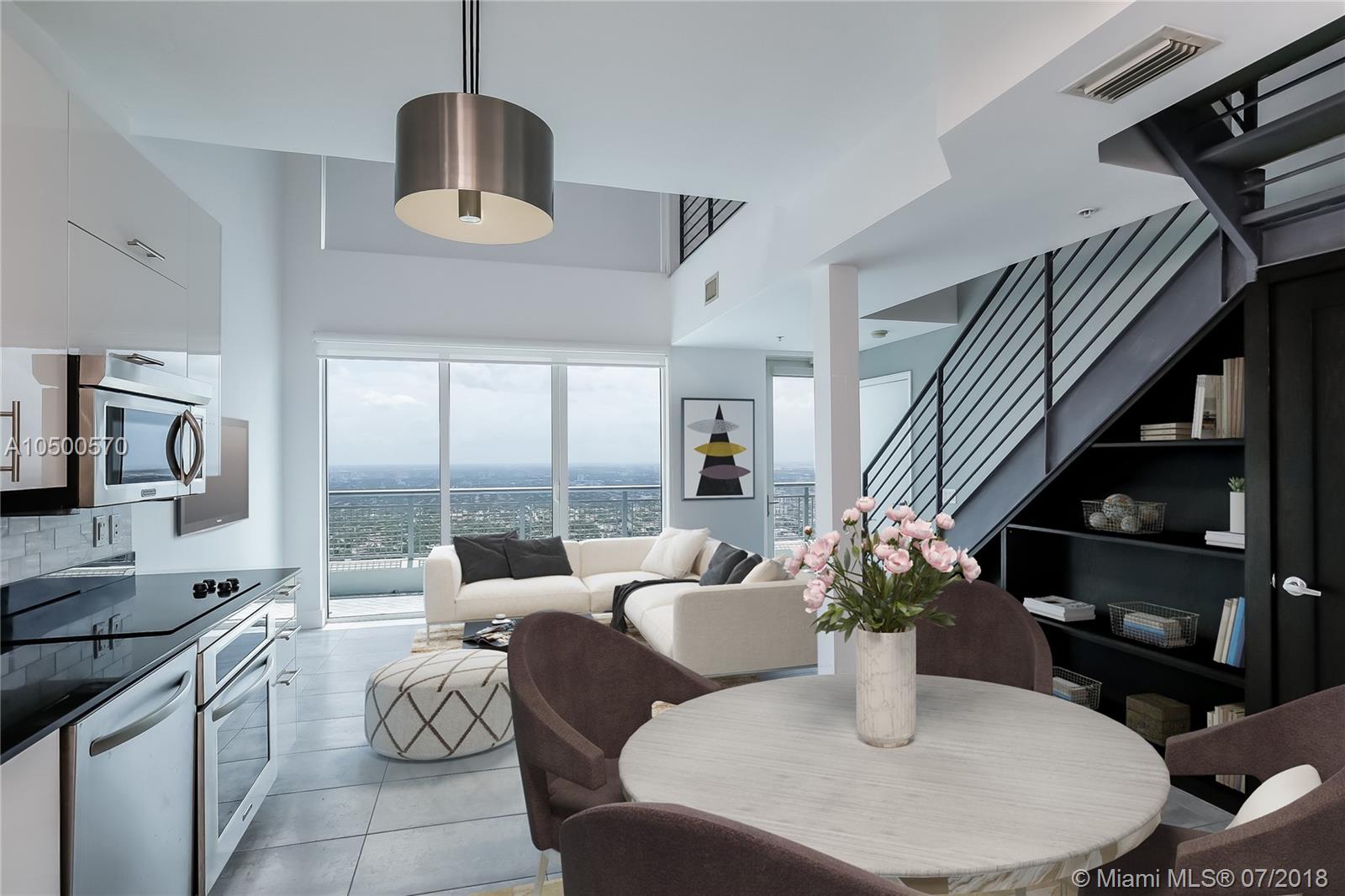 Recently Renovated! Always have an Unobstructed View! Infinity at Brickell 52nd floor loft-style 2-story penthouse unit includes master-bedroom on the second floor and two full baths, one on each floor, with unobstructed views of the City and Bay - even from the shower. This unit boasts 10-foot ceilings on each floor with impact resistant floor-to-ceiling windows and doors, 2 balconies, top-of-the-line kitchen appliances and brand name stacked washer and dryer conveniently located on the second floor next to the spacious master walk-in closet with custom Elfa-closet system. Additional storage is also available on the first floor via a custom under-the-stairs built-in unit. Includes access to exclusive 50th level rooftop. Conveniently located near popular attractions and neighborhoods.