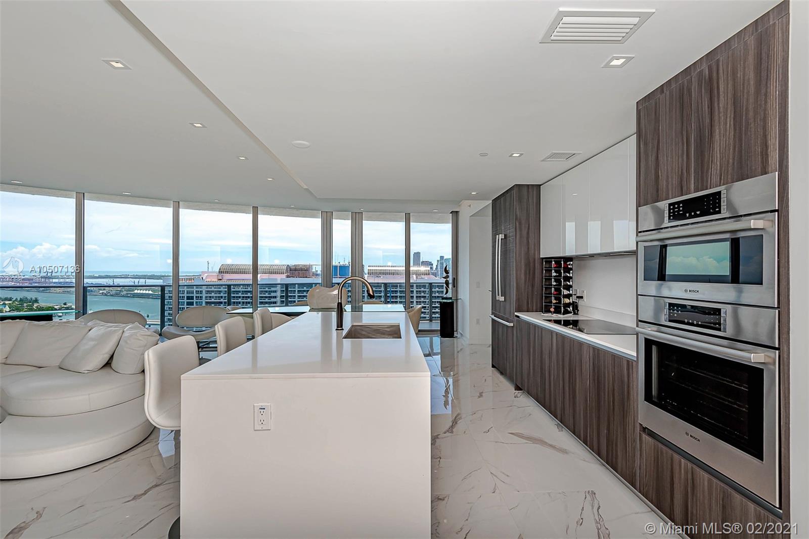Amazing 3 bed/4 bath+den home in the sky at brand new Aria on the Bay. Bright and spacious sought out corner unit facing East with breathtaking panoramic Biscayne Bay and city views. Unit features fabulous top of the line finishes, Italkraft cabinetry, Bosch stainless steel appliances and Brizo Faucets. Floor-to-ceiling windows and large balcony, great for entertaining. Aria offers a collection of 5 star amenities including sunrise and sunset pool, hot tub overlooking Biscayne Bay, movie theater, state-of-the-art fitness center, yoga studio, spa, BBQ area, lounge and kids’ playroom, business center, great room with flat-screen TVs and pool tables, valet parking and concierge services. In the heart of the Art and Entertainment District, close to parks, restaurants, shops and entertainment.