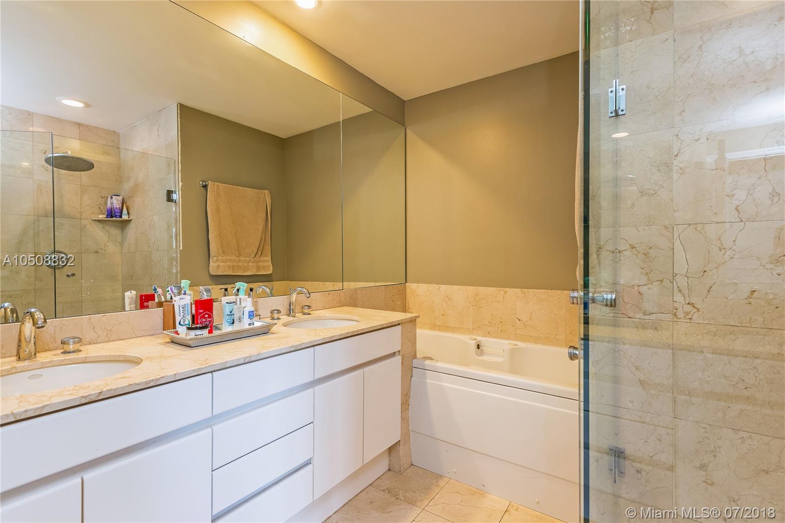 Exclusive Island living just steps away from the epicenter of Miami. Surrounded by water, Brickell Key is one of Miami's top neighborhoods and includes a 1-mile jogging path along the bay. There is a marketplace on the island as well as fine dining. Recently renovated Two Tequesta is an elegant first-class building with 24hr concierge/ full-service staff, bay-side pool, Jacuzzi, bi-level gym, indoor basketball court, tennis courts, off-leash dog park, racquetball, yoga room and exercise classes. Largest one bedroom in the building with over 1300sq ft of luxury interior space directly overlooking Biscayne Bay, South Beach, Port of Miami and Key Biscayne. Marble flooring throughout, large open Den and 2 full baths. Includes 1 parking and 2 storage spaces.