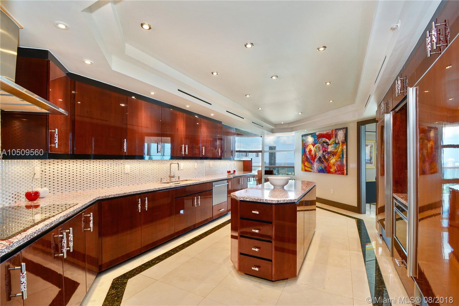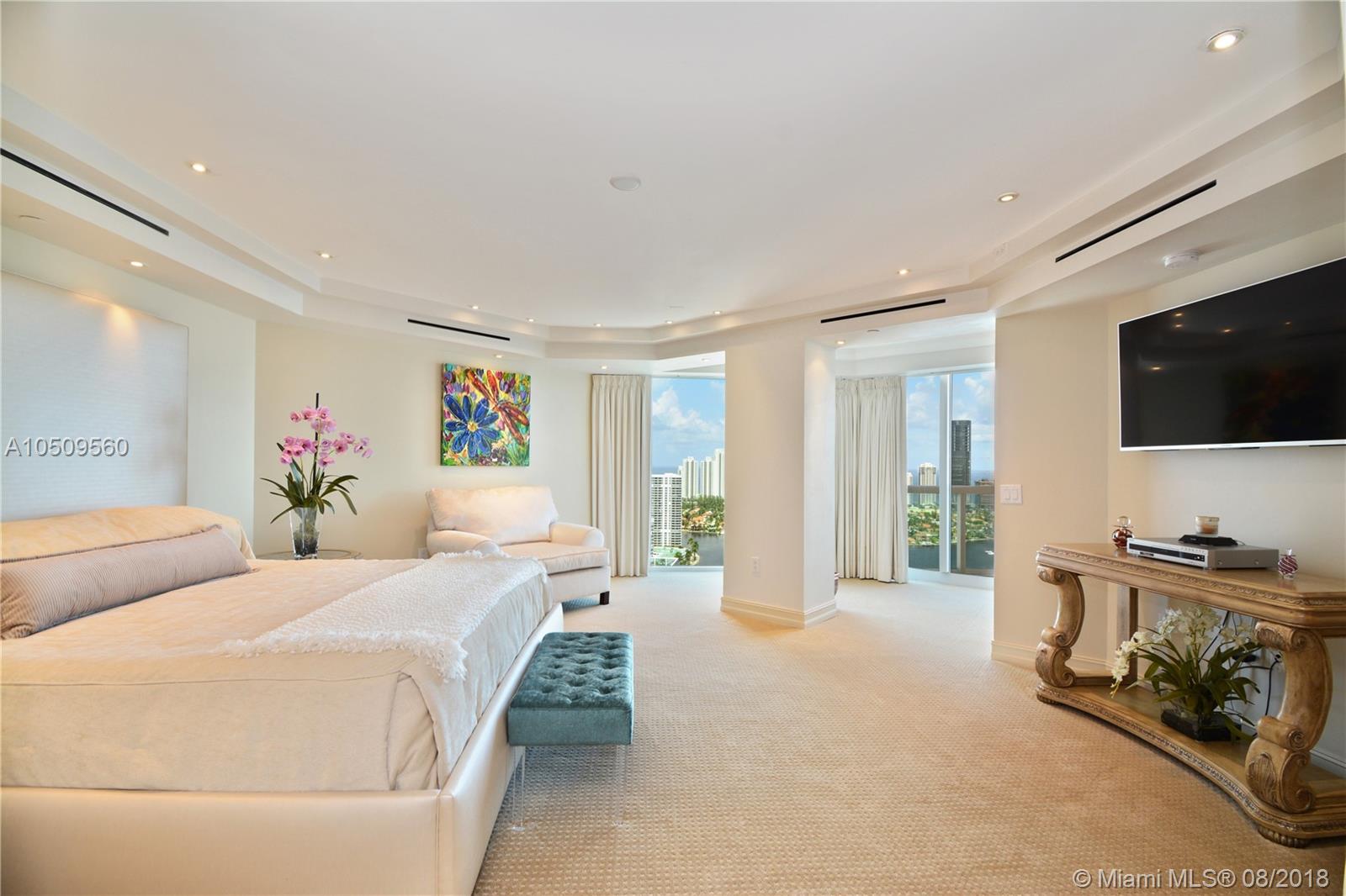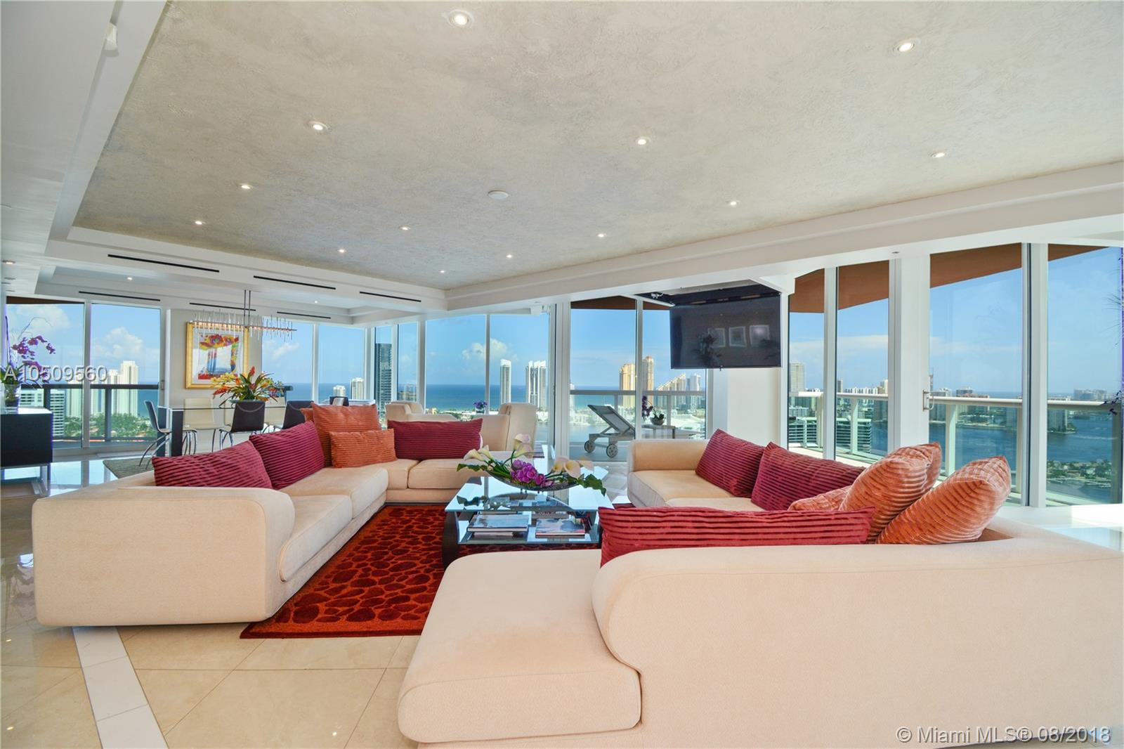 WOW! ENTER THRU PRIVATE ELEVATOR & IMMEDIATELY & THROUGHOUT SEE ENDLESS PANORAMIC OCEAN, BAY & MARINA VISTAS. THIS EXTRAORDINARY SKY HOME WILL LEAVE YOU BREATHLESS. NO EXPENSE SPARED & ALL REDONE BY FINEST ARTISANS & CRAFTSMEN TO CREATE A WORK OF ART. NOTHING ORIGINAL REMAINS. MARBLE THROUGHOUT ENTIRE RESIDENCE! NEW KITCHEN ELECTRIC WINDOWS TREATMENTS. 5 FULL BEDROOMS PLUS GREAT ROOM. HUGE LIVING AREA & MASTER WITH SITTING AREA AND A SEPARATE 2BED/2BATH APARTMENT WITH KITCHEN & LIVING ROOM. 5 GARAGE SPACES/OVERSIZED STORAGE. 3 LARGE WRAP TERRACES. A LUXURIOUS & INDULGENT HAVEN. IN THE HEART OF AVENTURA, NEXT TO FOUNDERS PARK FOR THE KIDS, WALK TO AVENTURA MALL, GROCERIES, RESTAURANTS, SOFFER EXERCISE TRAIL AROUND RENOWNED TURNBERRY ISLE GOLF COURSE. GREAT RESIDENCE IN GREAT LOCATION.