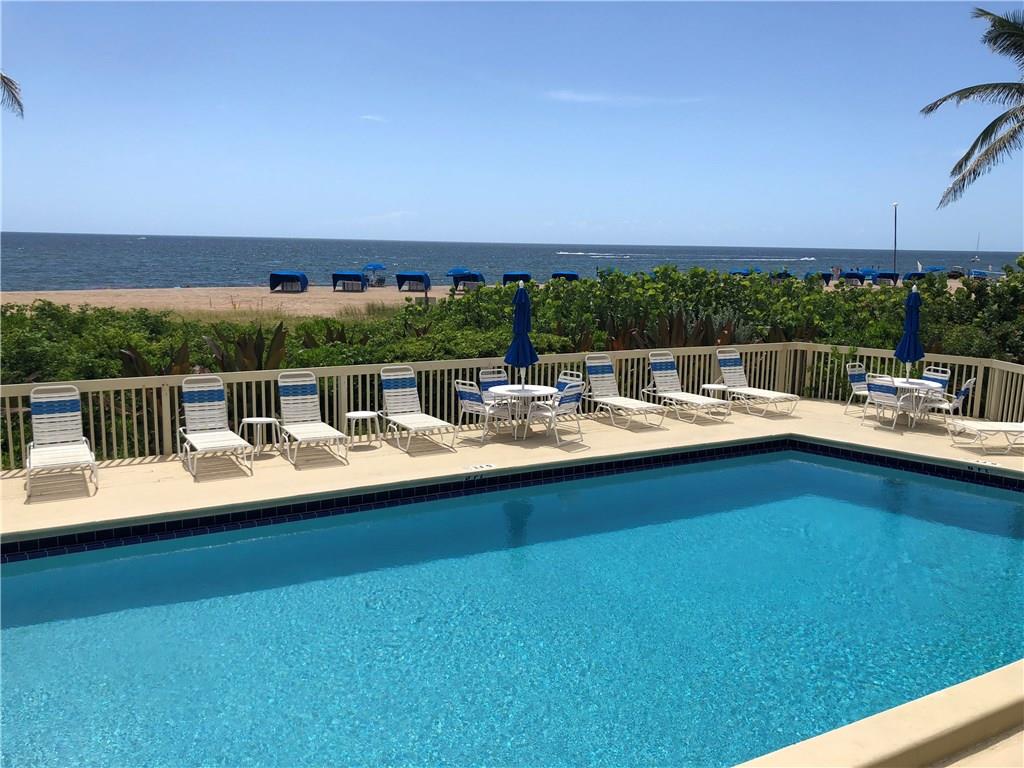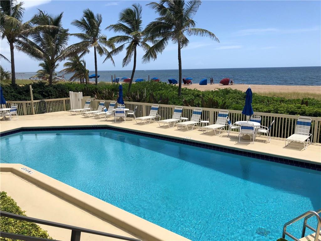 Direct Oceanfront and Beach access! Completely furnished 2 Bedroom/2 Bath Unit. Recently updated unit, quiet 46-unit building, covered and secure parking. Enjoy the pool (heated) which has direct access to the beach. Pets welcome under 20 pounds. Washer and Dryer in Unit.