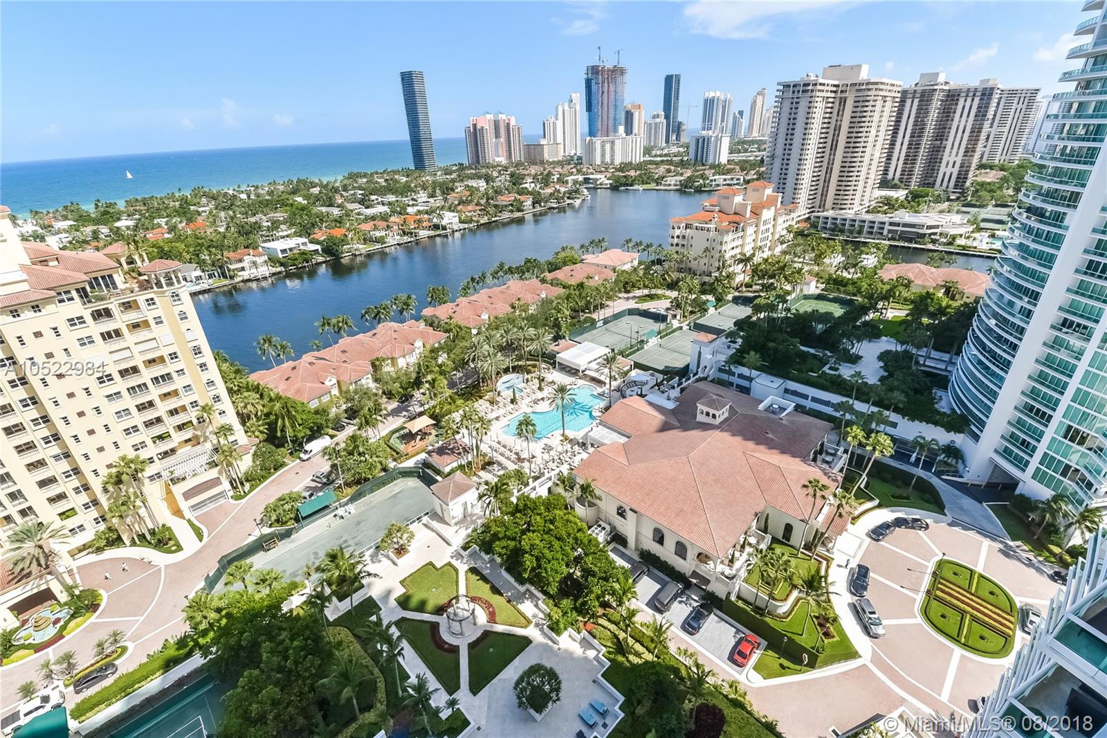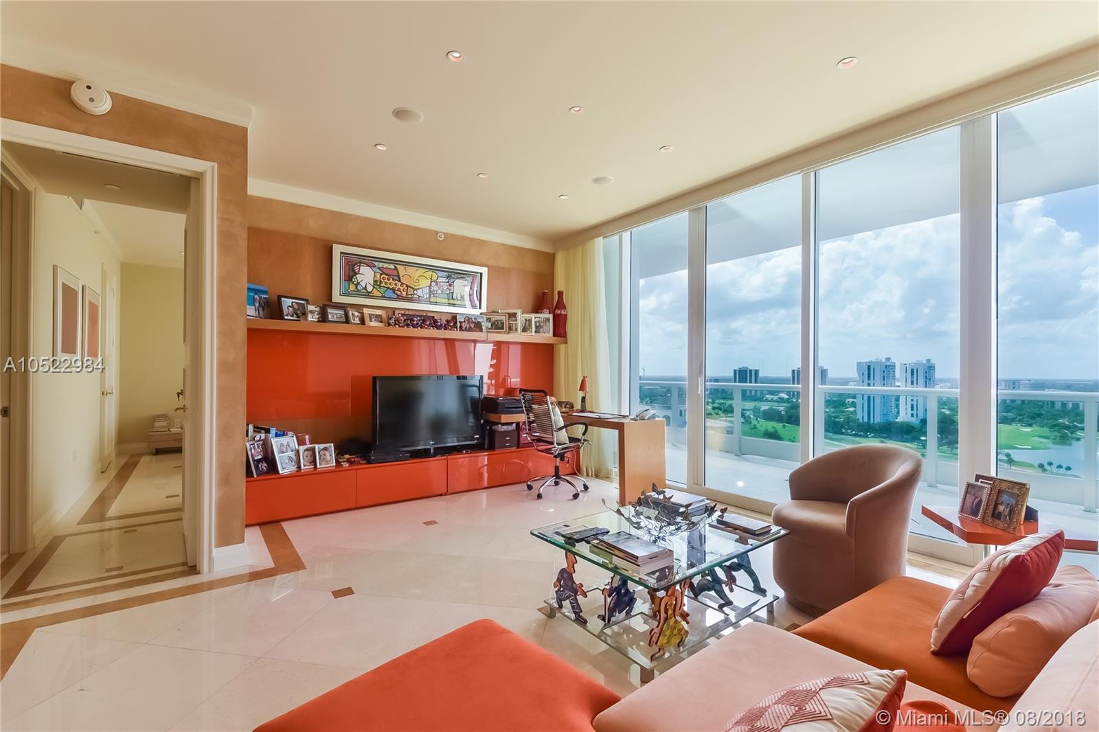 Enjoy living in this luxurious Porto Vita North Tower condo in heart of Aventura, spectacular flow through unit offering 3-beds + lg family room, 4.5-baths w/3,385 sq ft. of living space. Panoramic views of the ocean & intracoastal on east side & on the west facing the Turnberry golf course with over 700 sq ft of terraces. High ceilings, top of the line appliances such as Snaidero cabinets, Sub Zero refrigerator/freezer and Gaggeneu stove/oven. Private club for residents only. 5-star amenities include full service restaurant/bar, state of the art fitness center and spa, gorgeous pool area, tennis courts, children’s playground, beauty salon, party room, card rooms, 24 hours security, concierge and valet. Walking distance to Aventura mall, restaurants and places of worship. Easy to show.