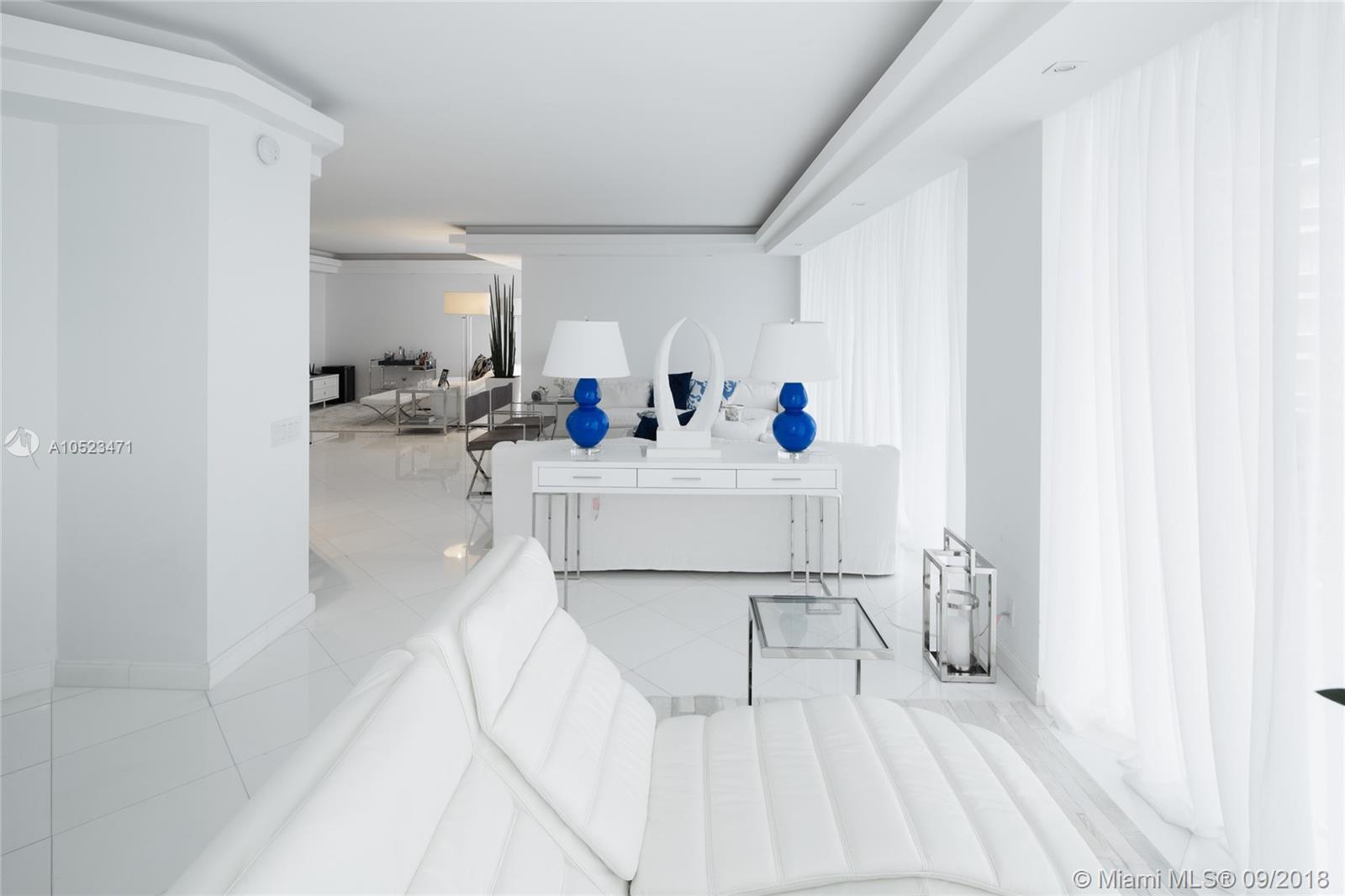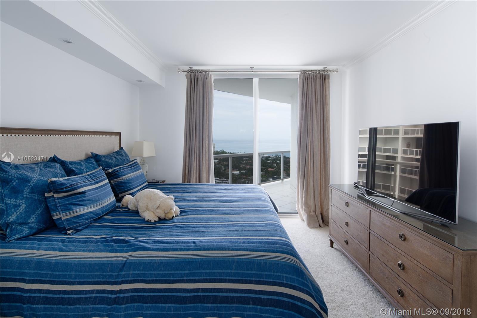 Highly sought after two bedroom PLUS DEN (which may be closed for third bedroom)Biscayne Model apartment. Floor plan attached. Interior features include private elevator entry along with spectacular views of the ocean, intracoastal and Golden Beach from every room. Offered fully furnished turn key if desired-negotiable. Contemporary furnishings from Artefacto along with beautiful white marble floors, motorized shades and drapery, LED lights, new plumbing fixtures, new carpeting in bedrooms, closet interiors, and new A/C. Additional walk in closet in master bathroom. Easy to show and sell!