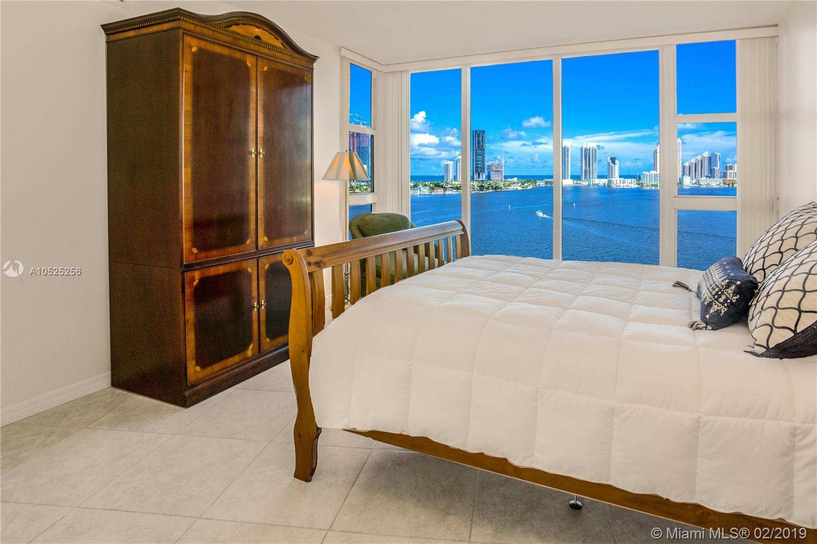 Breathtaking views of bay, ocean, Sunny Isles and Aventura. Masterful design and modern luxury are uniquely embodied in this 2 bedroom 2.1 bath apartment. This is one of the few marina communities in Miami with resort style amenities such as private gym, valet parking, 4 tennis courts, stupendous pool overlooking the bay, concierge & security.