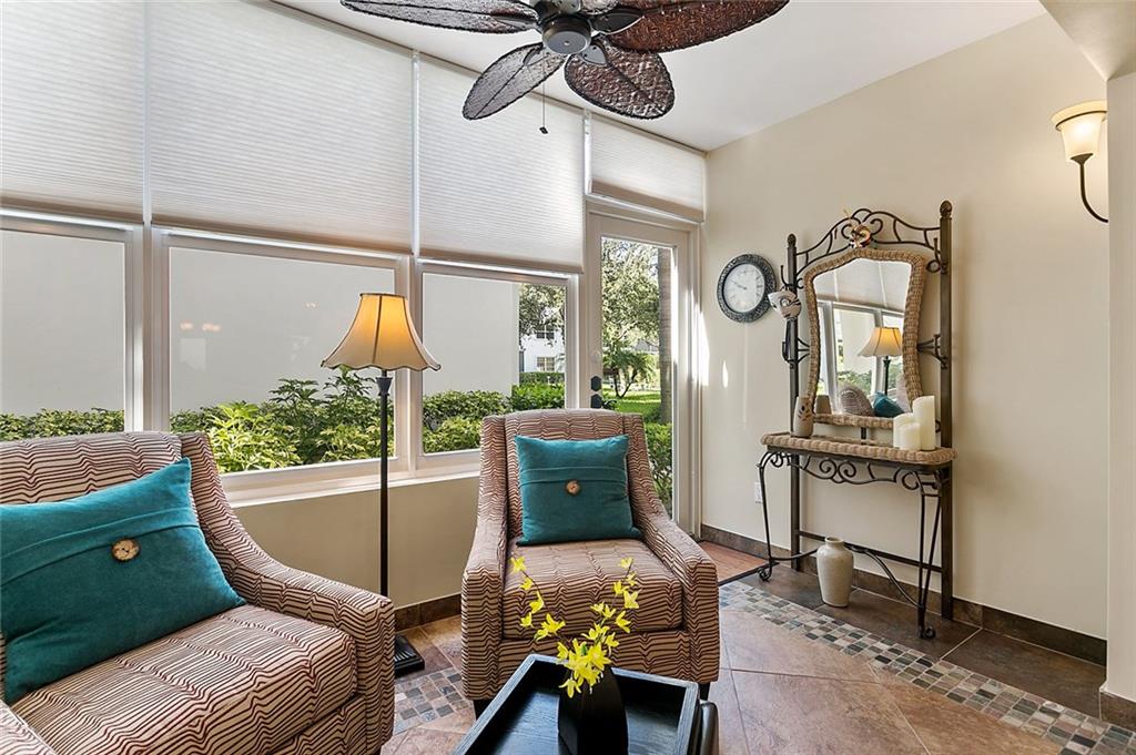Charming, very well maintained 2/2 corner unit on 1st floor. Kitchen features granite tops and (like new) s/s appliances. The patio is enclosed (with hurricane impact windows/door) tiled and subtly screened. Furniture in master bedroom included in sale with sleep number mattress. Equipped with W/D combo in master bedroom closet. All windows and patio door are hurricane impact. Boutique building well maintained with low maintenance fees. INVESTORS: Rent 1st year, 12X per year. Pets 25lbs max.
