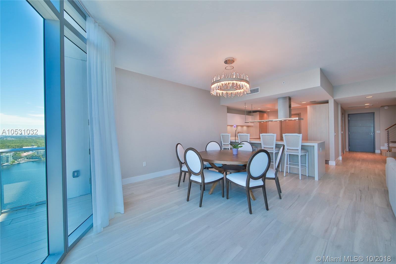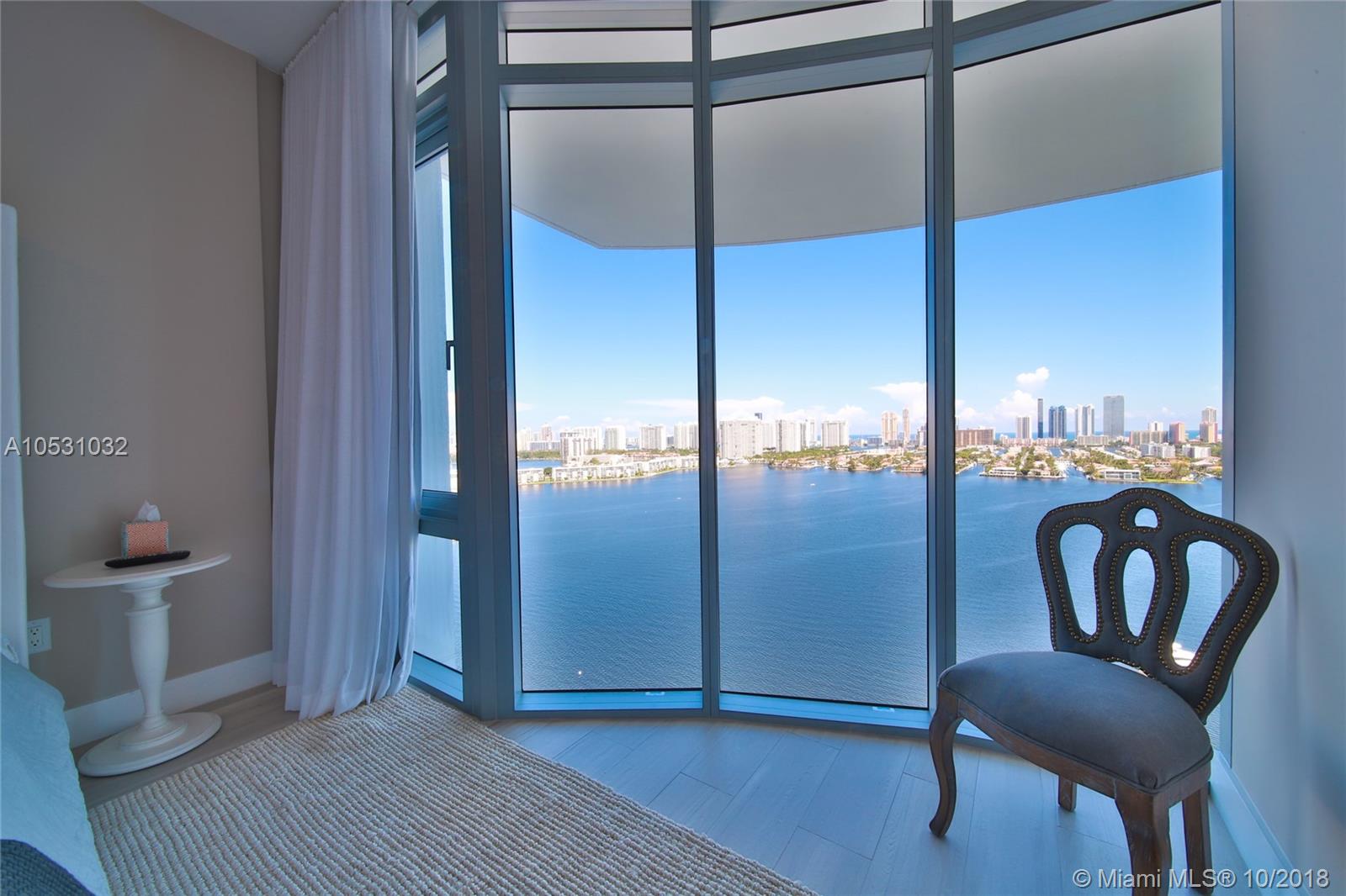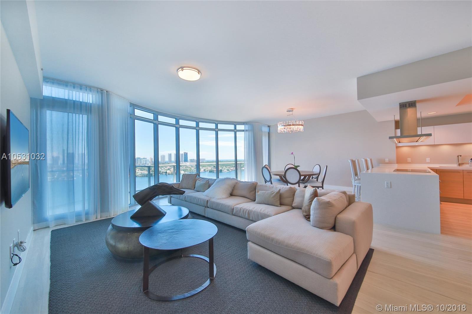 Stunning duplex unit impressive round window that gives the feeling of living over the water. 2 bed, 2.5 bathroom and a very modern design. Unique ocean skyline view at Marina Palms Residences South. Unit can be combined with 1910 also for sale. Marina of 70 ft also for sale with this unit. Exclusive community with private marina with full service. 2 parking spaces, 1 storage and free valet. Fitness club that includes free spinning classes, spa, pool, business center.
