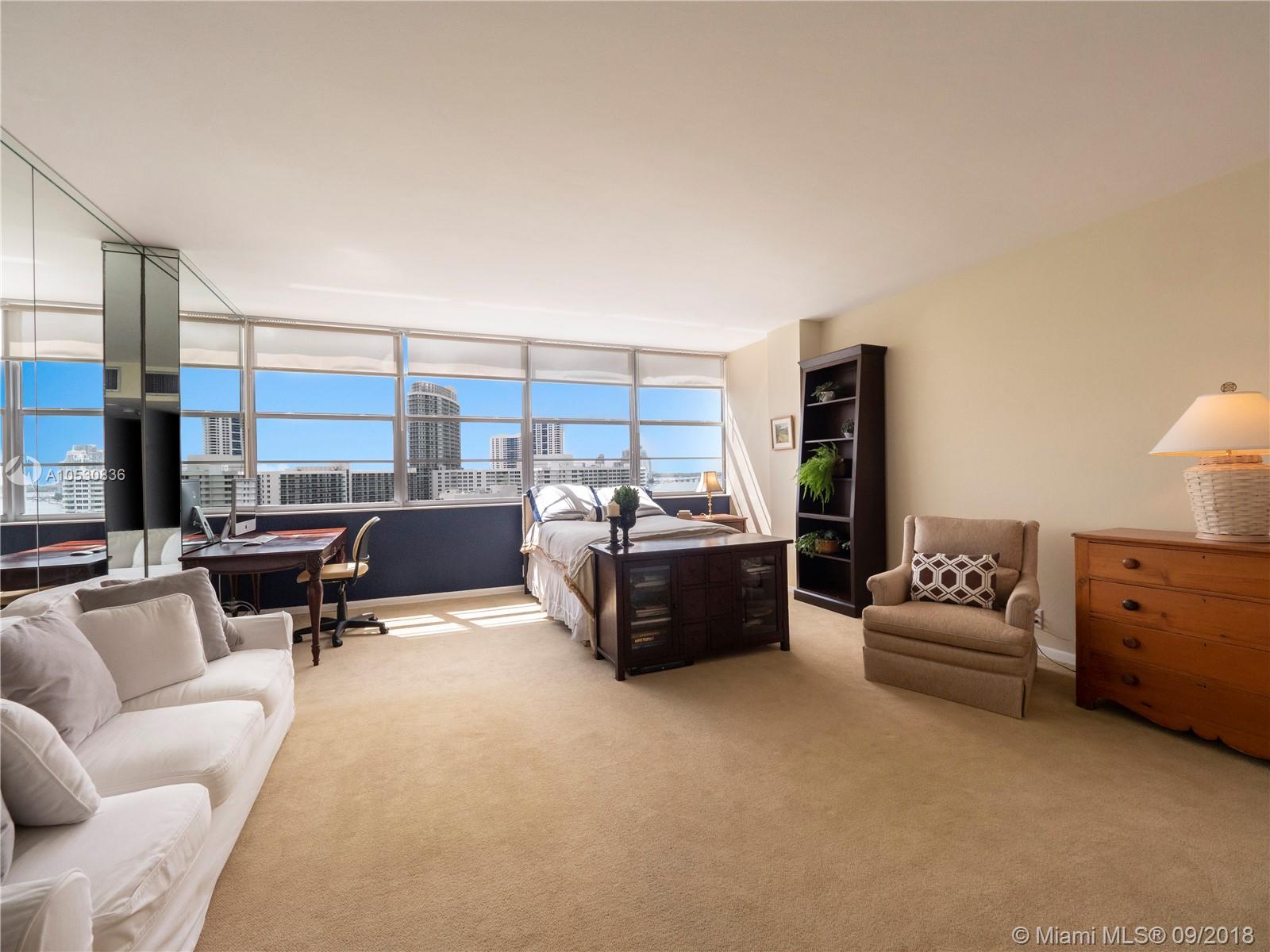 Million dollar views from this spacious studio on the 14th floor at Belle Plaza, one of the most sought after locations on Miami Beach. Recently upgraded to all impact windows, your gaze will stretch across stunning panoramic views that include Biscayne Bay, South Beach & the Atlantic. This Mid-century gem comes with move-in ready charm & includes an assigned parking space and 4 closets which provide ample storage. Concrete restoration & parking lot resurfacing have just been completed. Recent hallway & common room renovations, gym & tennis court upgrades & many other building enhancements provide an exquisite life style. And as an added benefit, charming Belle Isle Park sits outside your front door.