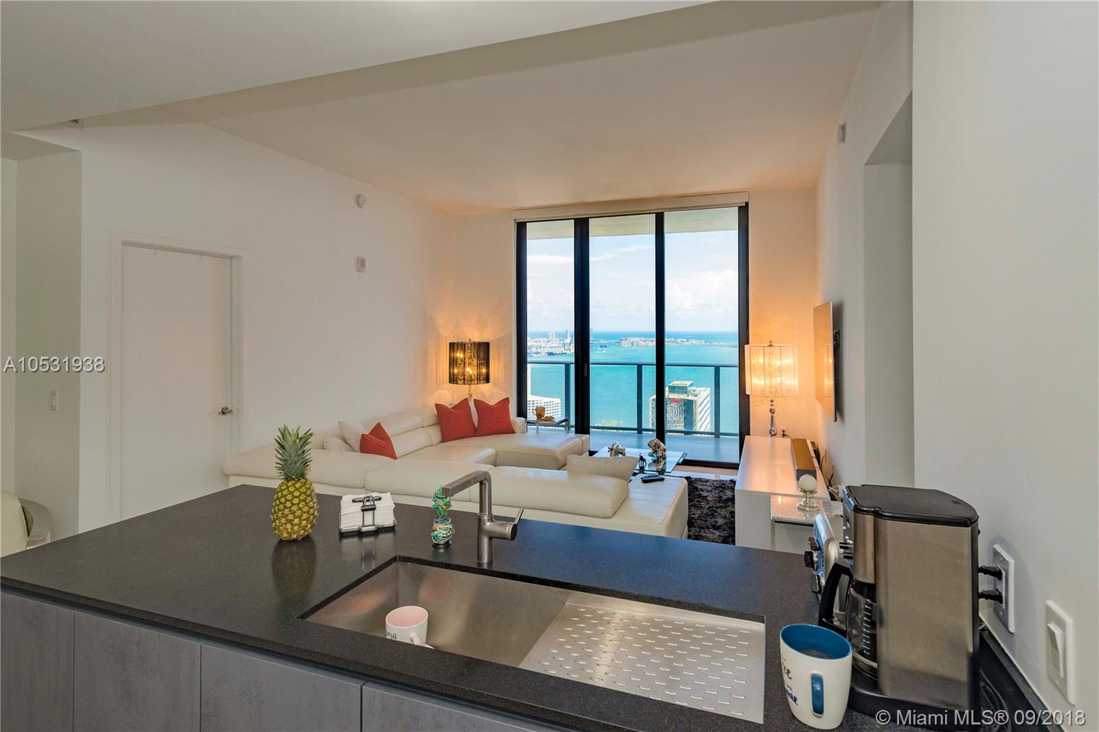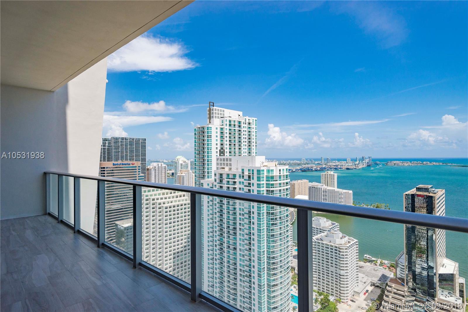 A superb and sophisticated architectural masterpiece by Sieger Suarez. Perched high above the 47th floor, the private elevator launches you into this 2 bed + den, 3 bath residence covering a total area of 1,778 sq ft (as per Developer’s). Features include floor to ceiling wall of glass with breathtaking views of Biscayne Bay & Miami skyline, two spacious balconies, 36’ x 36’ Carrara style Italian porcelain floors plus a gorgeous European kitchen with SS appliances. 1010 Brickell provides a multitude of amenities: indoor heated pool with a retractable glass walls that provides access to the outdoor pool & Jacuzzi, lavish sun deck & rooftop terrace, exclusive access to the 2-story ‘The Club at 1010,’ a spa with a Hammam Turkish steam bath area, fitness center & running track plus much more.