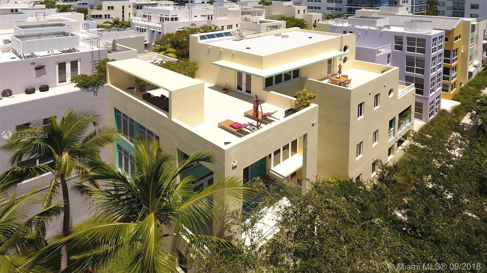 The largest Townhouse at Aqua with a grand double ceiling height living room and 6 generous terraces, designed by a prize winning architect is available. Enjoy all the conveniences of condo living in a private town house. The landscaping and pool maintenance are taken care of by the master assoc. Enjoy your boat, as the deeded 40' dock that comes with the property is right outside your front door. Aqua is waterfront living at it's finest in security with a 24 hour gated community guard house, a gym, concierge services and two pools. This oasis of calm in Miami Beach's prime location just 15 min. from Lincoln Rd, Bal Harbor Shops and close prox. to Miami Airport. Ideal for seasonal owners who would like more space /guest rooms or year round safe family living in close prox. to top schools